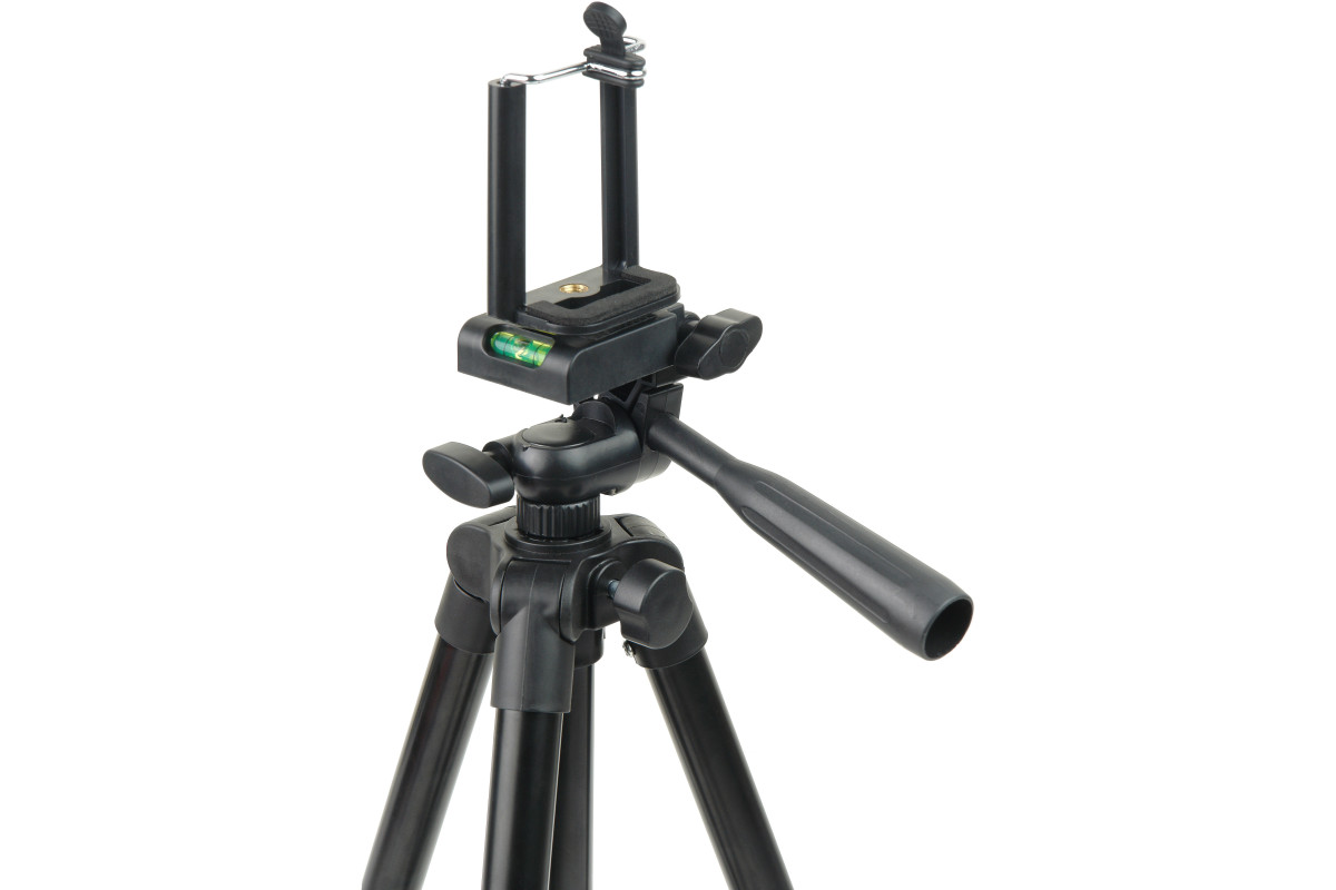 Штативная головка 3D позволяет устанавливать фотокамеру или смартфон в положения для съемки вертикальных или горизонтальных кадров. Штатив можно выставить и зафиксировать в выбранном положении относительно горизонта с помощью пузырькового уровня на головке