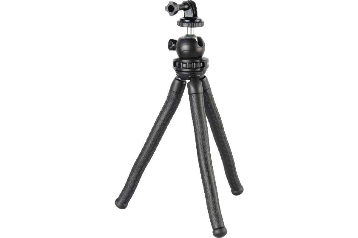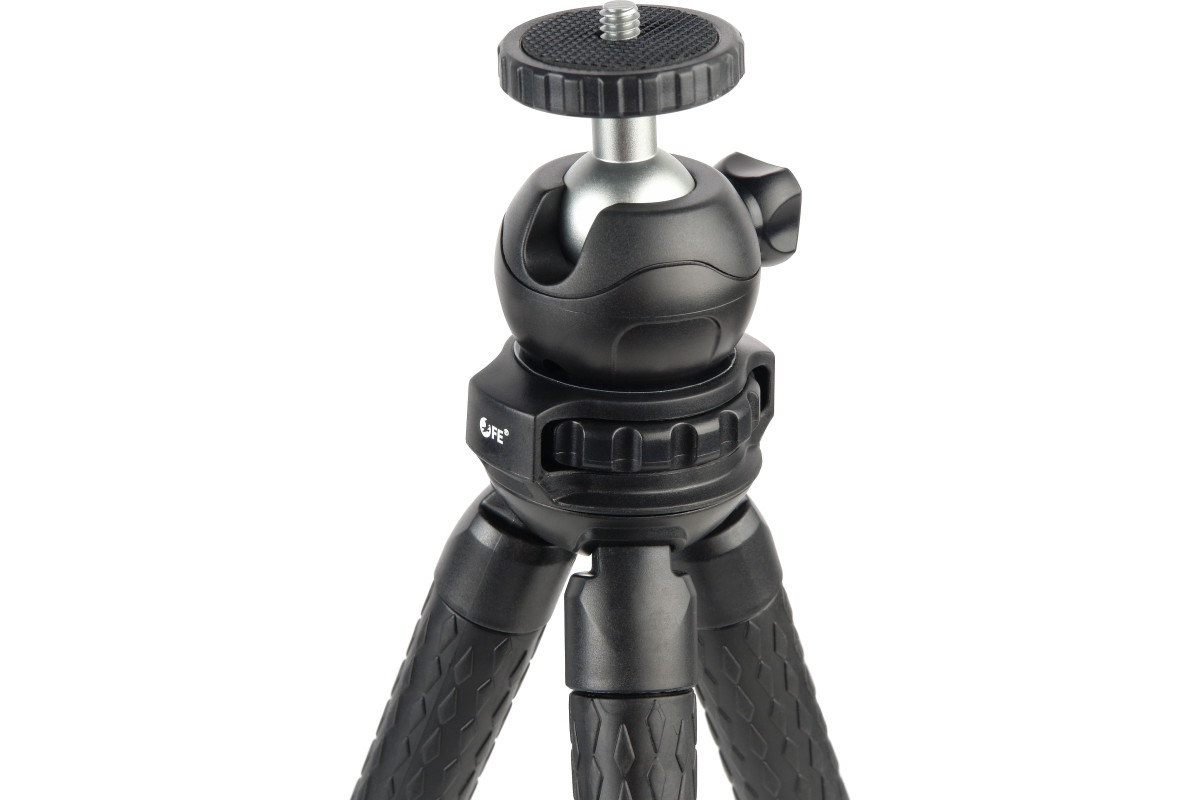 Ножки штатива сгибаются в любом направлении под любым углом и остаются в зафиксированном положении на длительное время. Благодаря особому материалу отсутствует эффект остаточного напряжения, работающего на выпрямление – главное не превышать допустимую нагрузку; на поверхности ножек не остается заломов и вы сможете использовать штатив долгие годы. Обрезиненная фактурная поверхность ножек не скользит и штатив (а значит камера) устойчиво закрепятся в нужном положении.