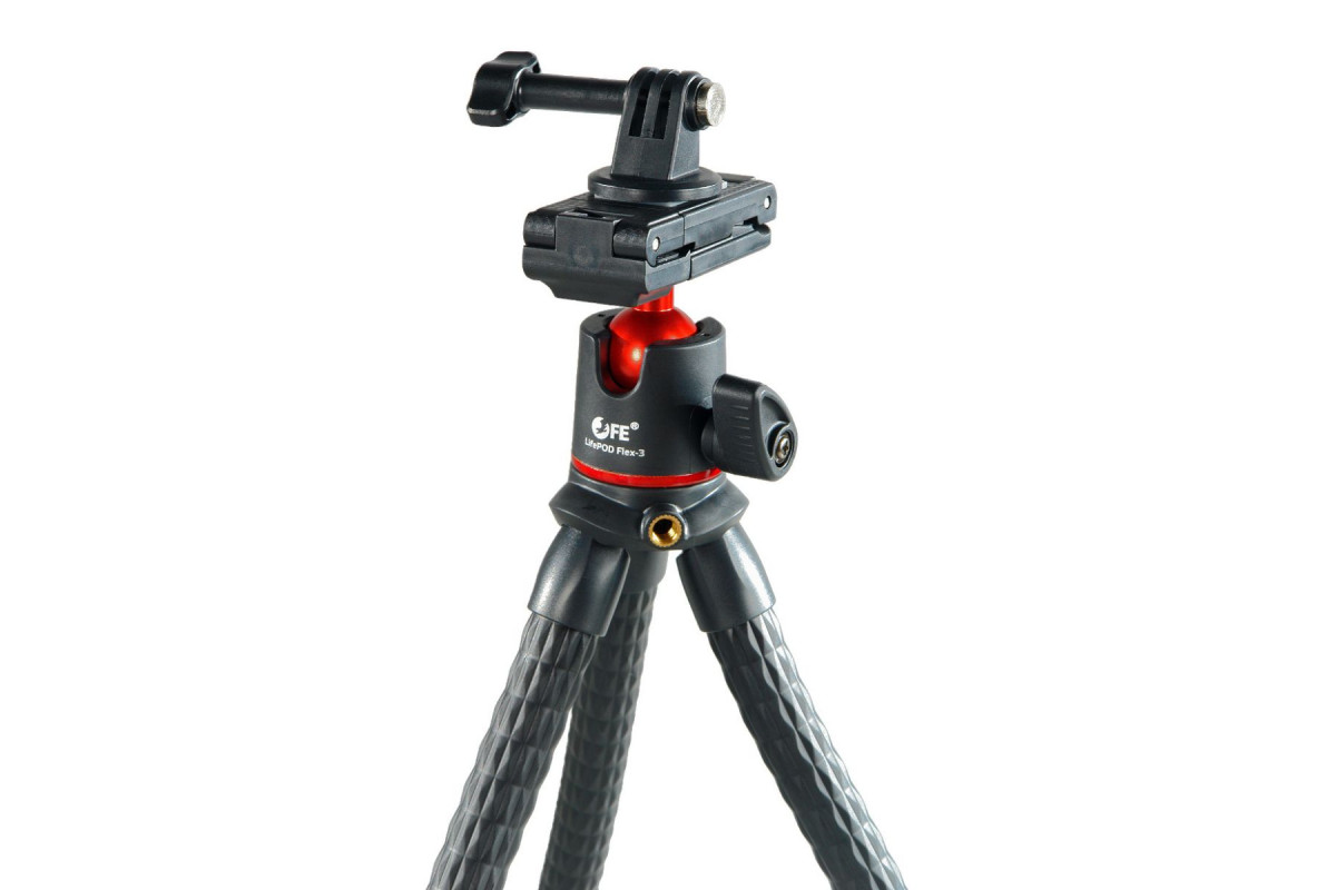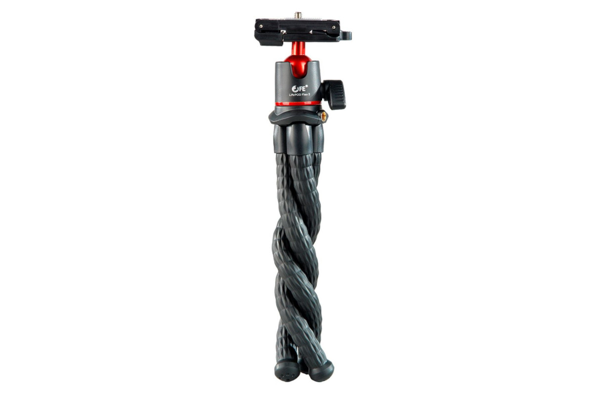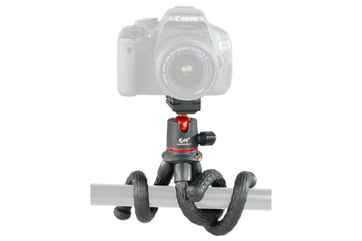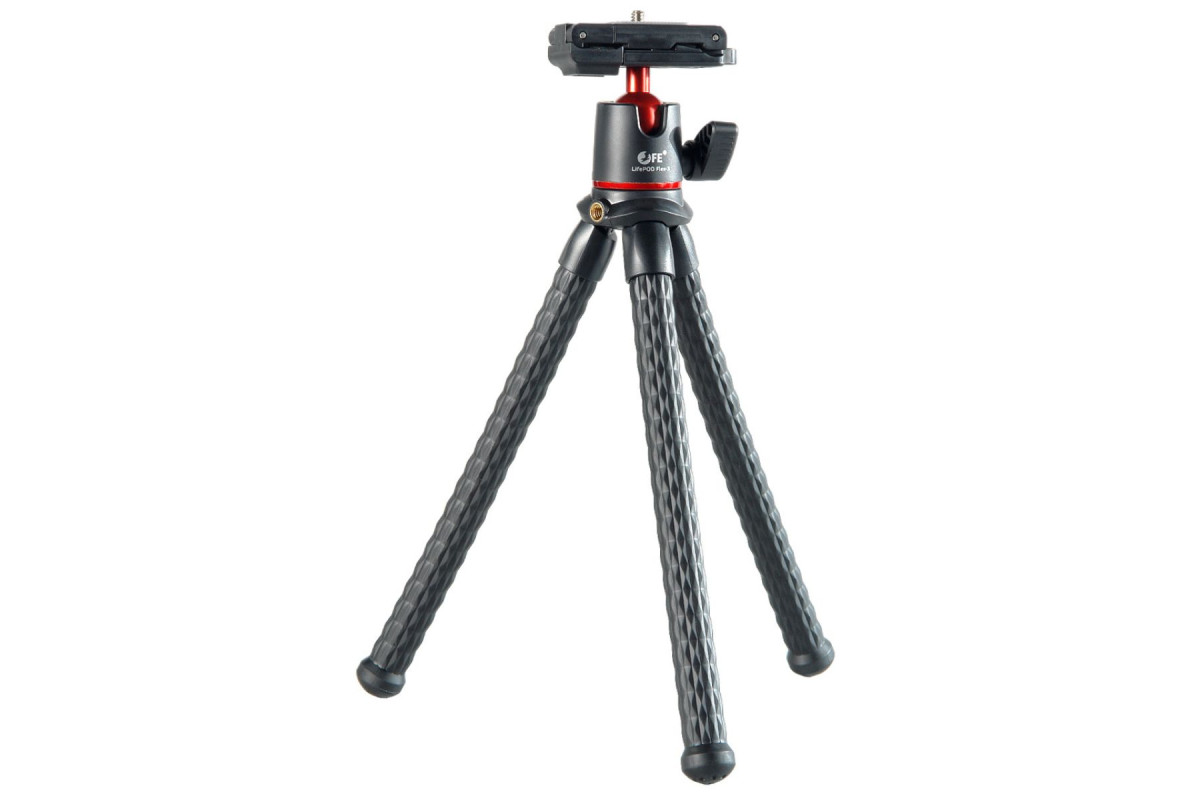 Falcon Eyes LifePOD Flex-3 – штатив с гибкими ножками и шаровой головкой для крепления цифровой камеры, смартфона или экшн-камеры GoPro. Максимальная нагрузка 1,3 кг, длина штатива 31 см.