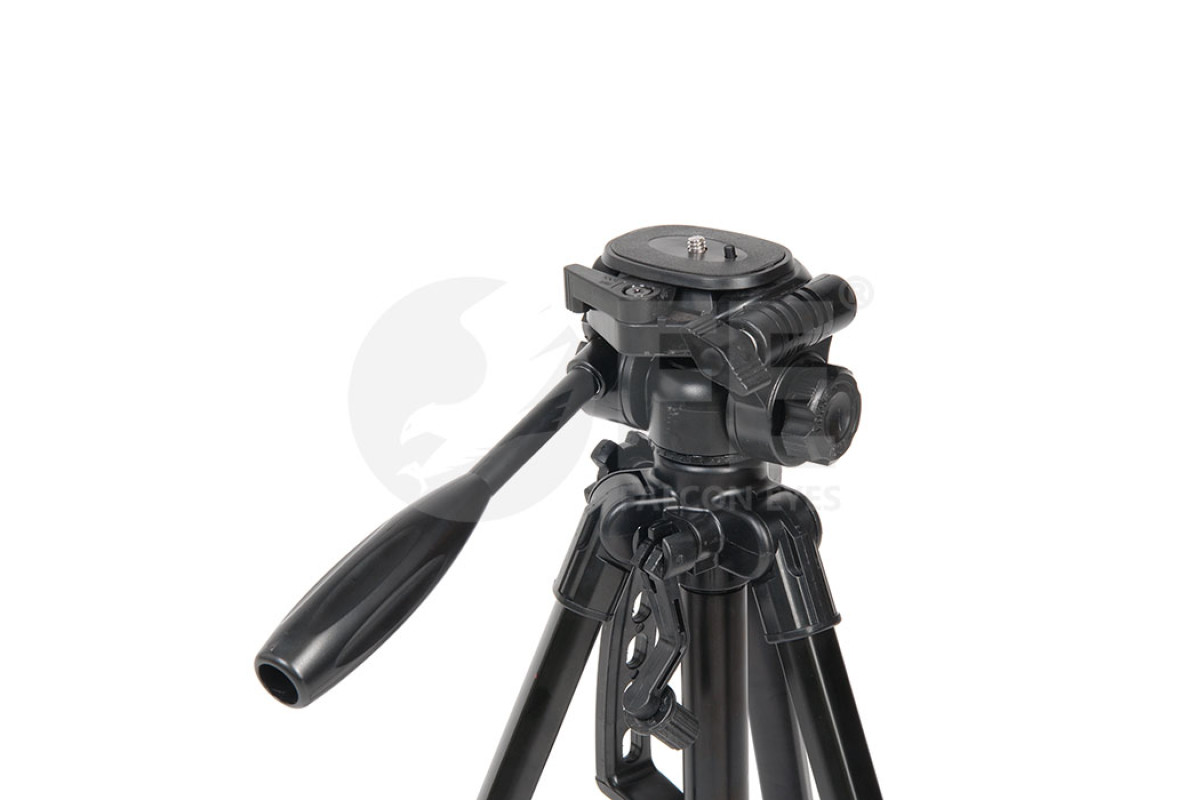 Вращение головы вокруг вертикальной и горизонтальной оси происходит независимо. Благодаря этому штатив можно использовать для панорамной фотосъемки или видеосъемки. Третья ось позволяет наклонить камеру вбок для перехода в "портретный" режим. Длинная рукоятка позволит вращать камеру плавно, без резких рывков.