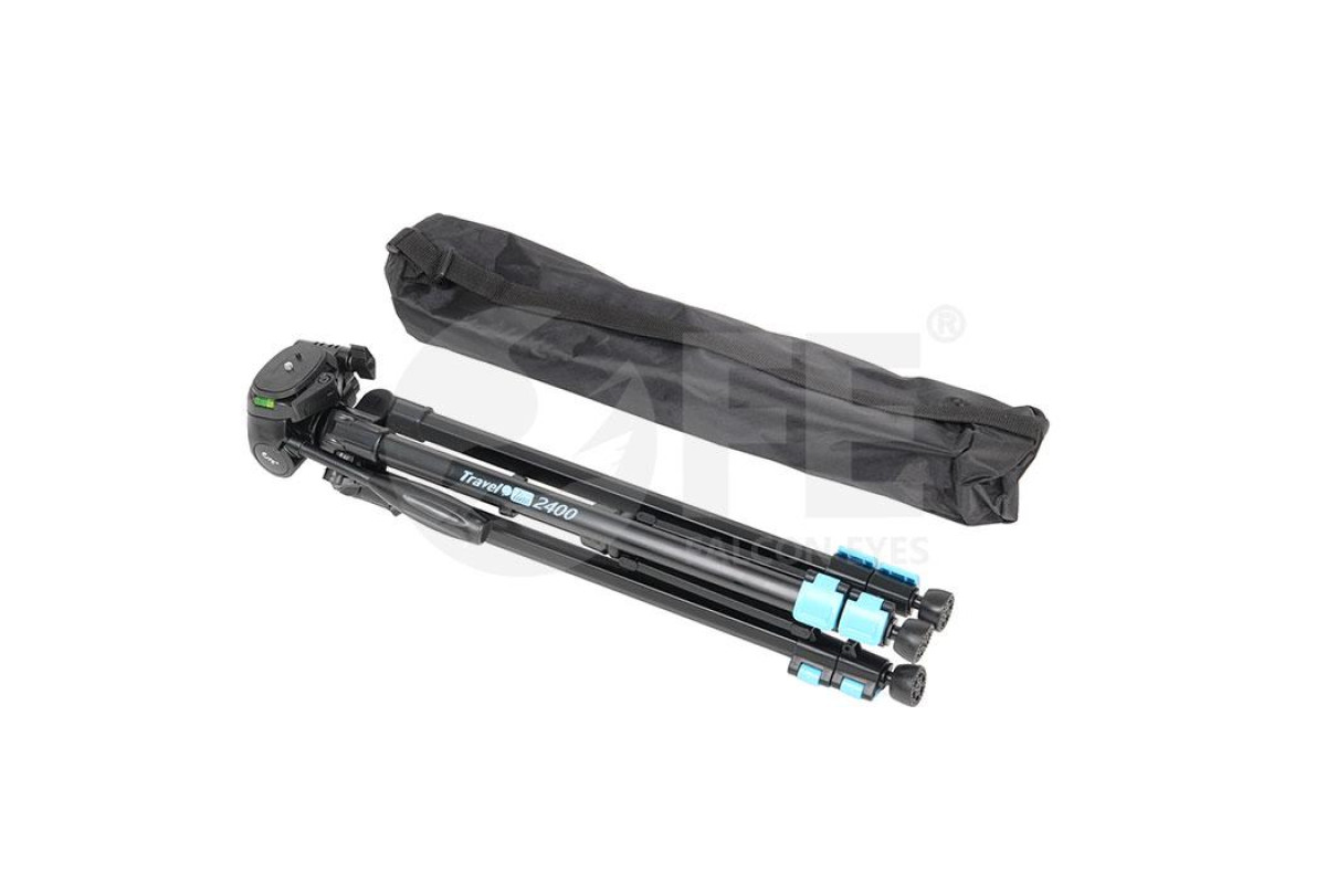 Falcon Eyes Travel Line 2400 — легкий 3-х секционный штатив с 3D-головкой, пузырьковым уровнем и выдвижной центральной колонной.