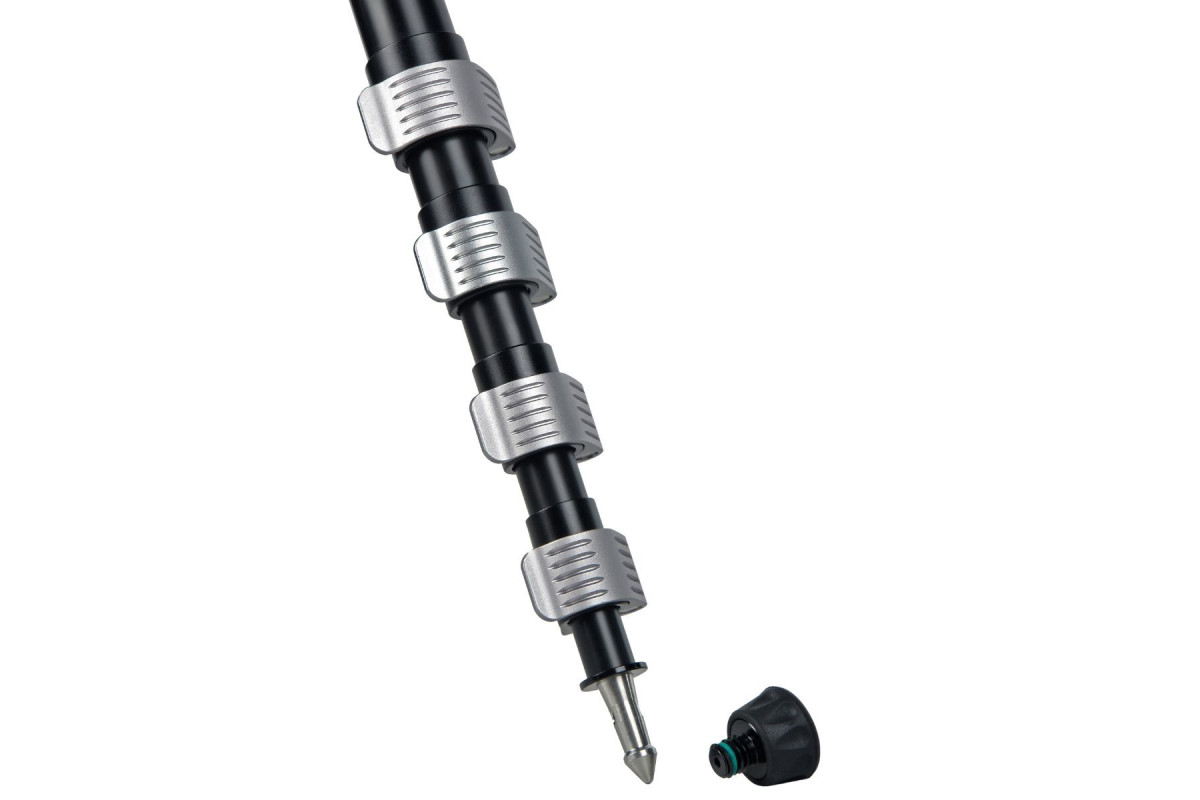 Штатив состоит из пяти секций, которые надёжно фиксируются с помощью тугих клипсовых зажимов. Степень затяжки зажимов регулируется шестигранниками (входят в комплект). Благодаря большому количеству секций, штатив в сложенном виде занимает мало места — всего 43 см в длину, при этом конструкция остаётся устойчивой и надёжной.