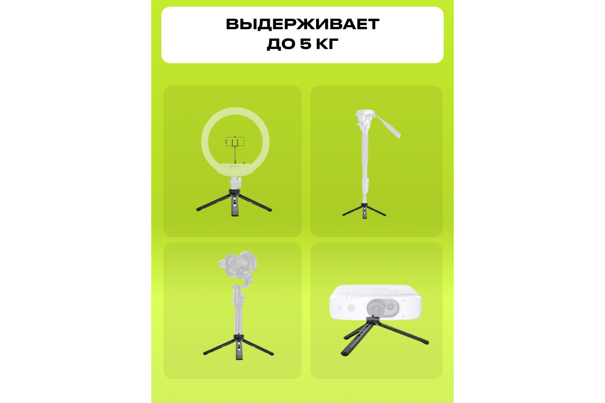 Raylab MT-TM – лёгкий, компактный и надёжный мини-штатив для использования с камерами, смартфонами, осветителями, микрофонами, стедикамами, а также другим оборудованием в студии, дома или на выездной съемке.