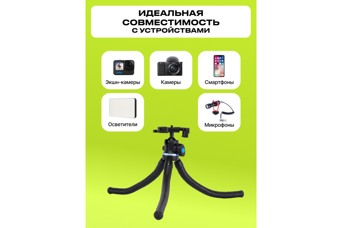 RayLab MTF-SCB – профессиональный мини штатив с гибкими ногами, позволяющий сделать кадры с самых невероятных ракурсов. Компактная длина 30 см и небольшой вес 290 гр позволяют взять его с собой в отпуск, студию или на выездную съёмку, а универсальное крепление ¼” делает его совместимым с большим количеством устройств весом до 2 кг- компактными камерами, смартфонами, осветителями, кольцевыми лампами и микрофонами. Высота штатива регулируется от 120 до 270 мм. Универсальный штатив Raylab отличается высоким качеством материалов и изготовления, что обеспечивает долговечность и надежность. В сложенном состоянии ноги штатива можно использовать в качестве рукоятки для фото и видеосъемки, что будет полезно при съемки в движении, а прорезиненное покрытие придает дополнительное сцепление с рукой. Этот компактный штатив будет особенно полезен для блогов, стримов, селфи, предметной и пейзажной съёмок.