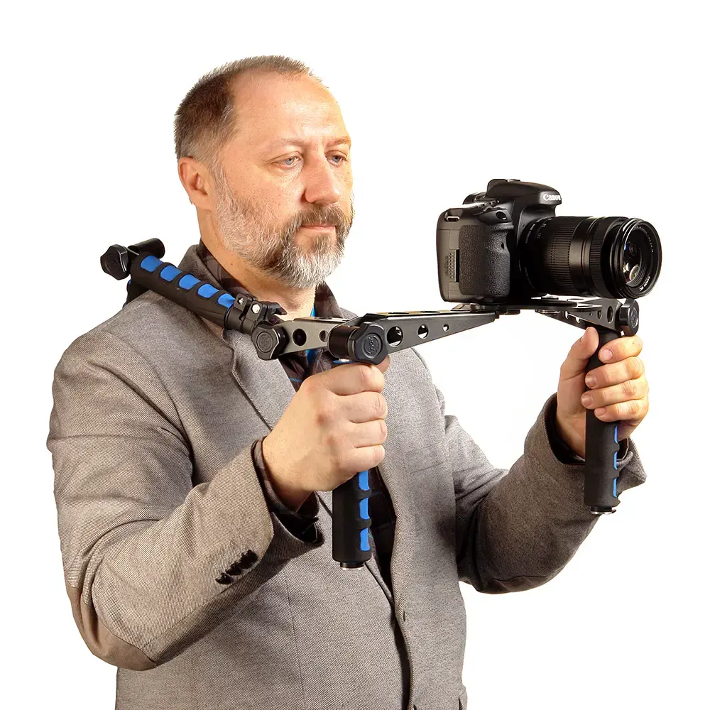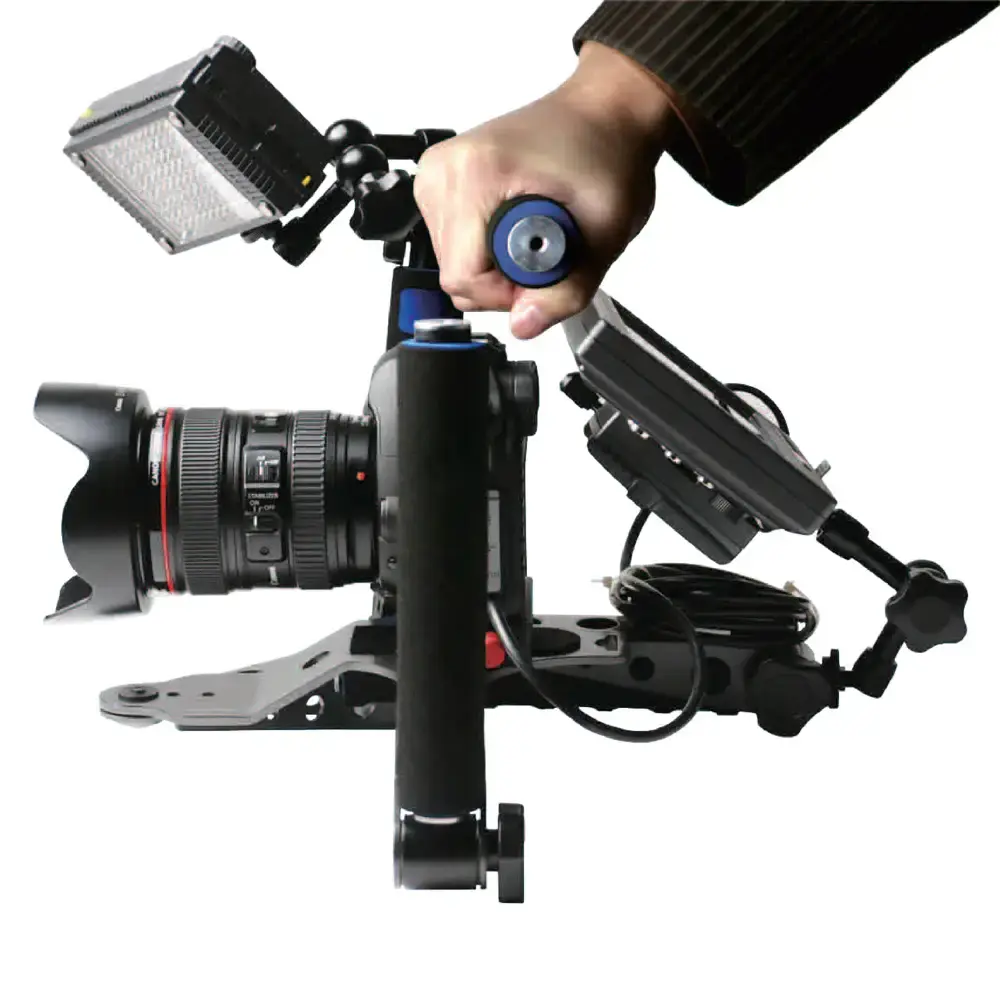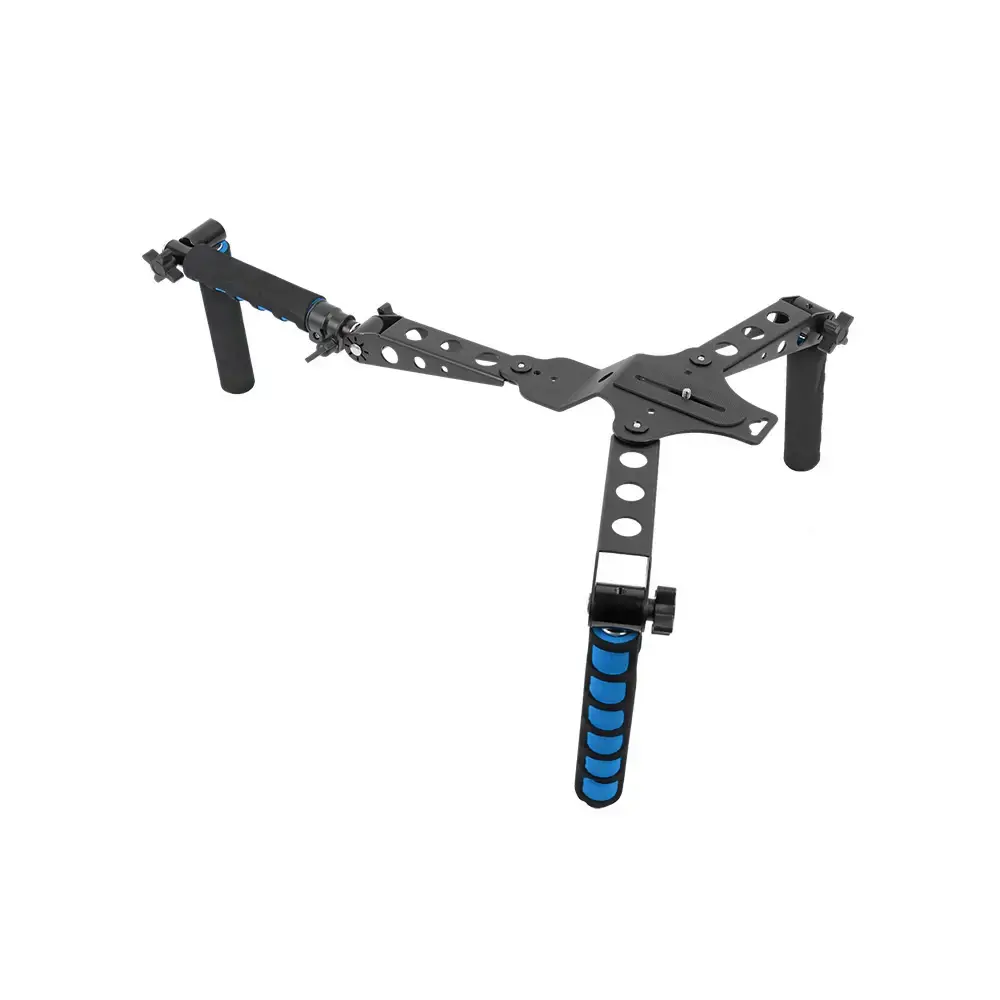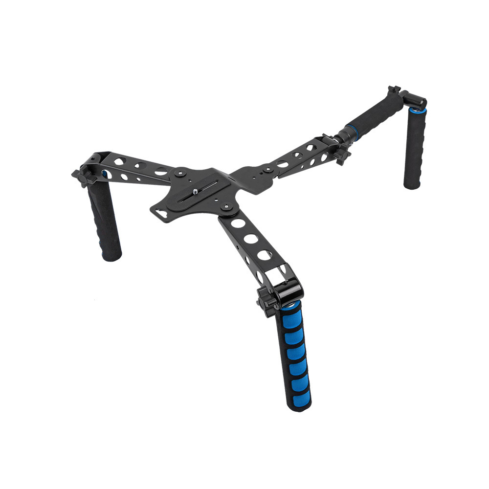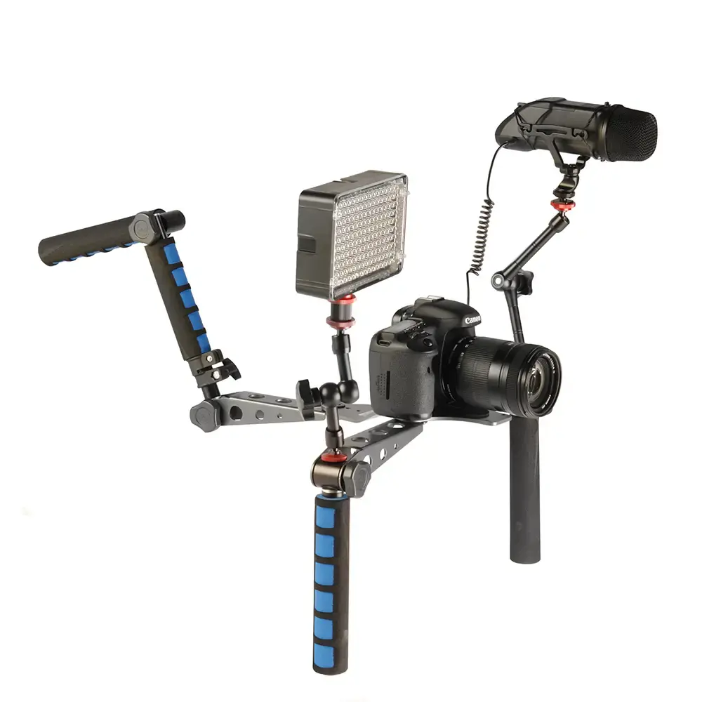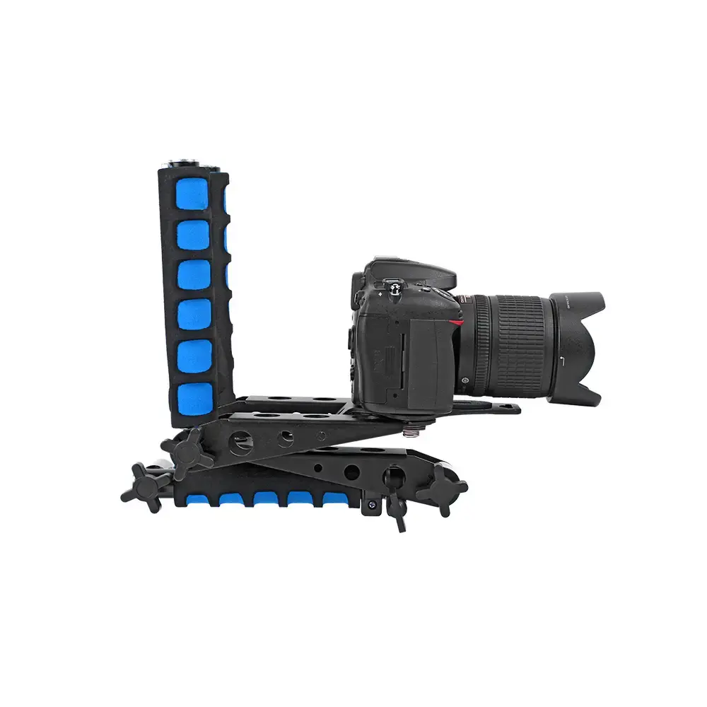 Многофункциональное устройство выдерживающее максимальную нагрузку до 15кг, которое в различных конфигурациях можно использовать, как наплечный штатив, плечевой упор, «клетку» для съемки с нижней точки и т. д. Основа конструкции сделана из стали, окрашенной порошковой эмалью, с перфорацией для облегчения конструкции, вес штатива всего лишь 1.1кг.