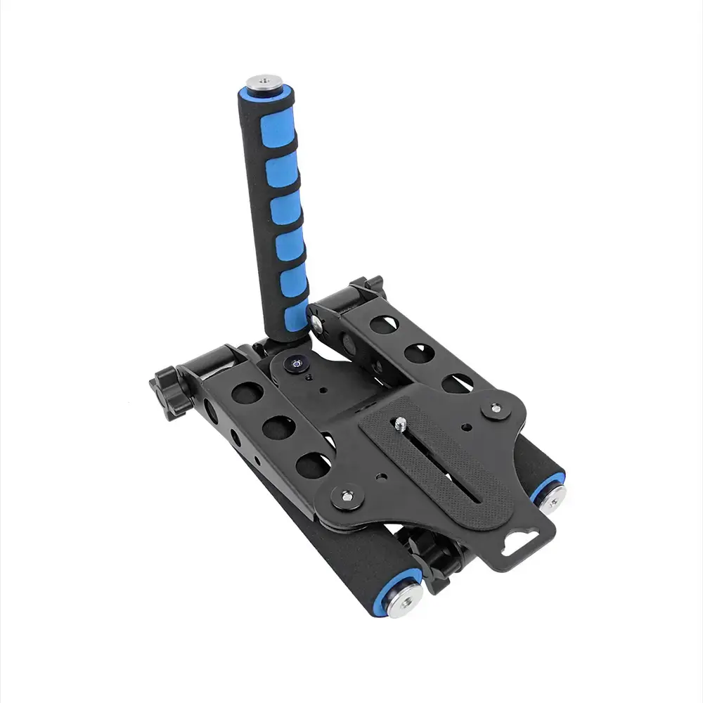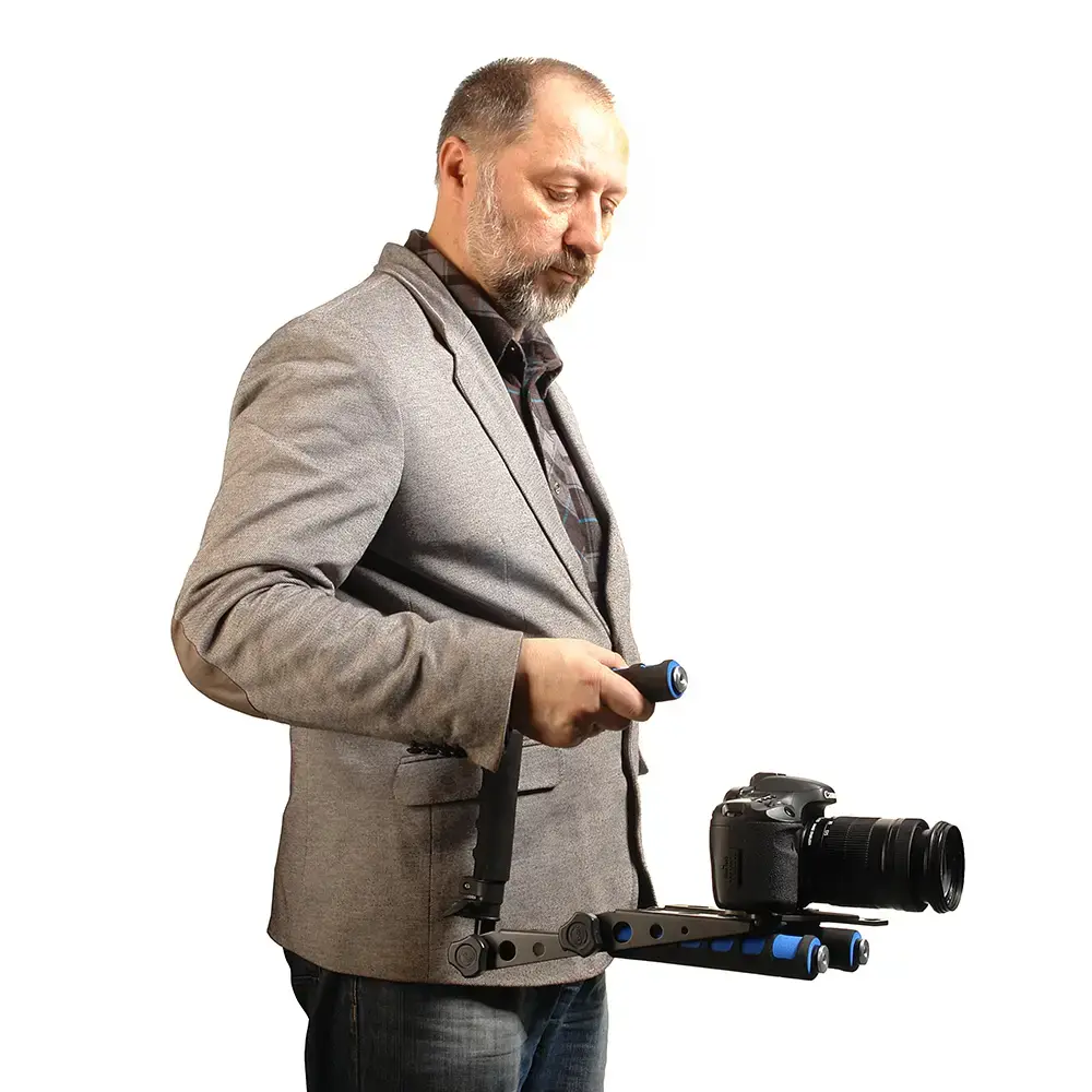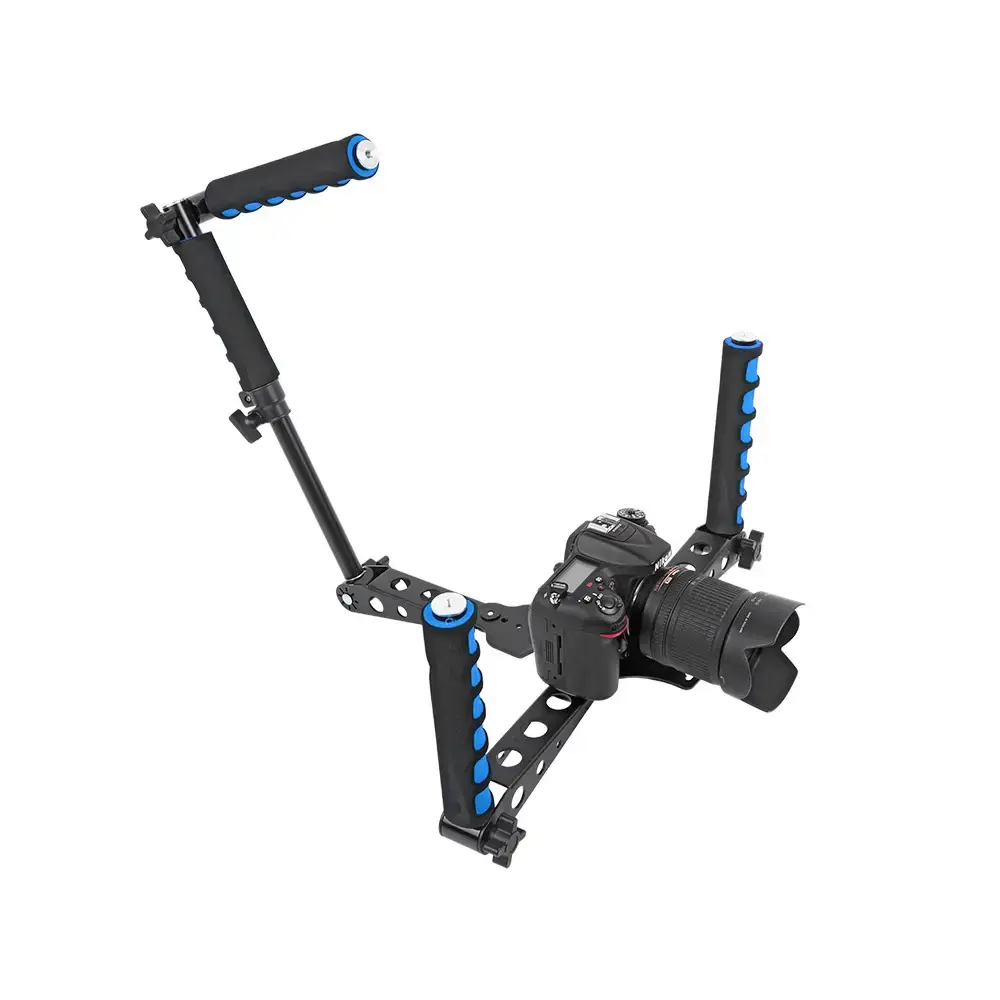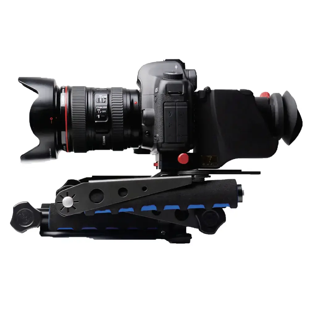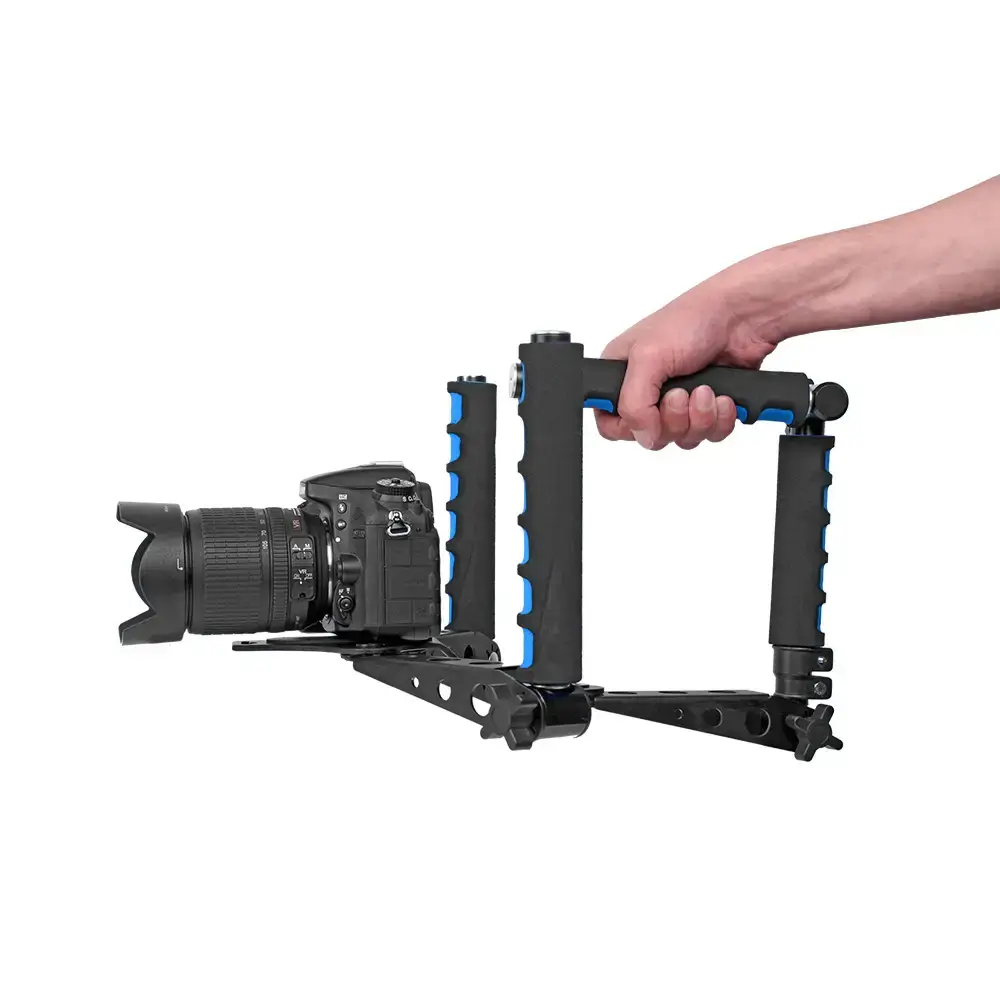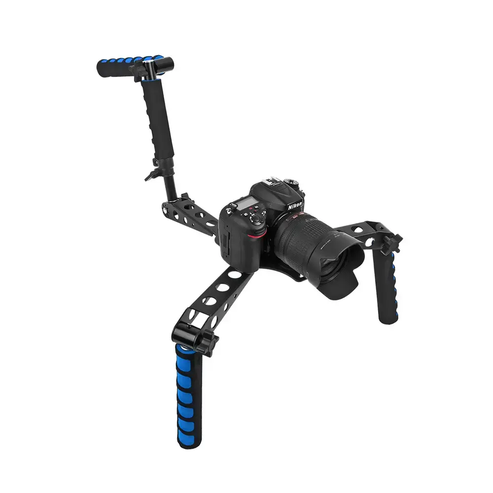 Многофункциональное устройство выдерживающее максимальную нагрузку до 15кг, которое в различных конфигурациях можно использовать, как наплечный штатив, плечевой упор, «клетку» для съемки с нижней точки и т. д. Основа конструкции сделана из стали, окрашенной порошковой эмалью, с перфорацией для облегчения конструкции, вес штатива всего лишь 1.1кг.