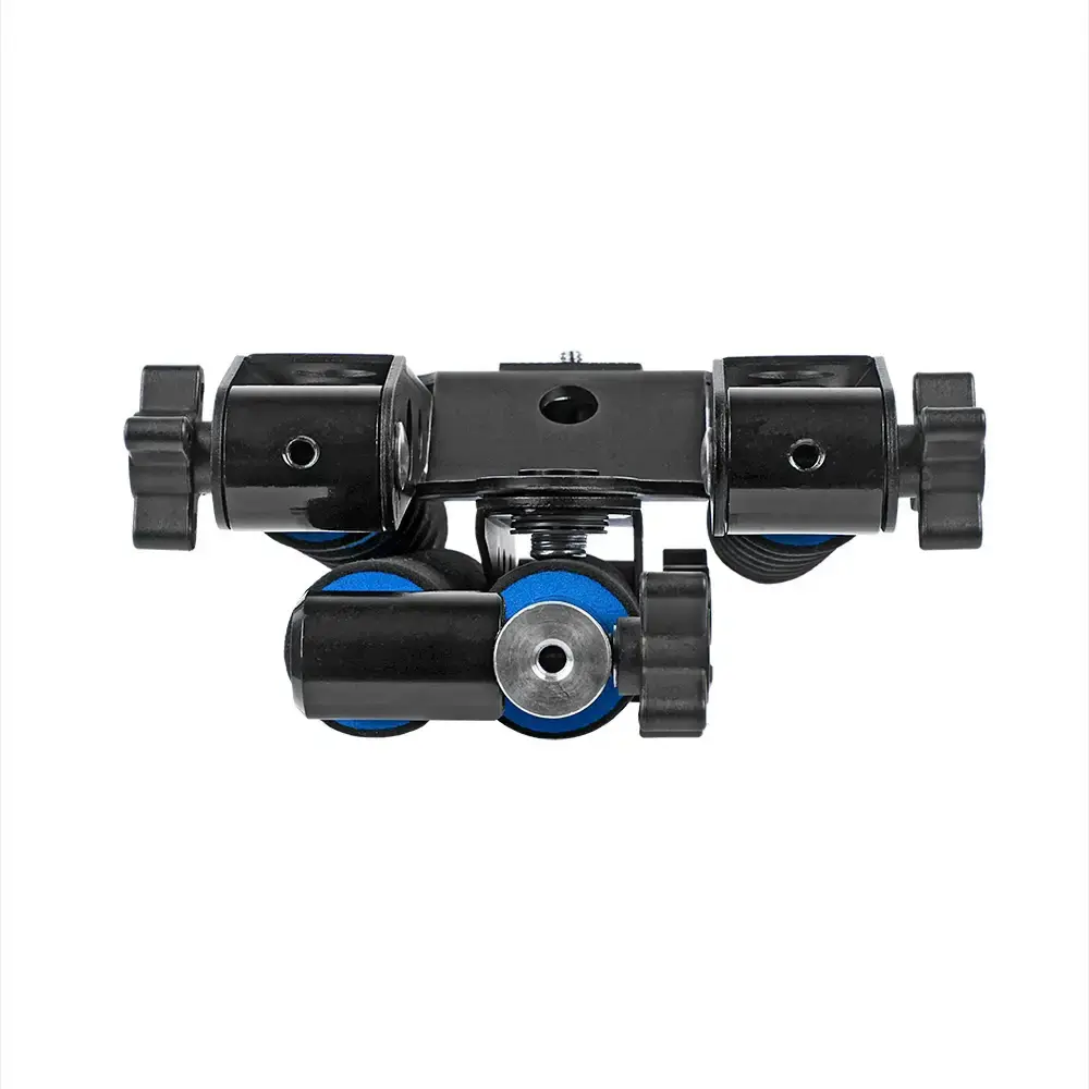 Снизу и сверху в ручках имеются отверстия 1/4 дюйма для крепления дополнительных аксессуаров (осветителей, микрофона и т. д.) Благодаря подвижному винту 1/4 дюйма камера может передвигаться по площадке штатива в пределах 70 мм.