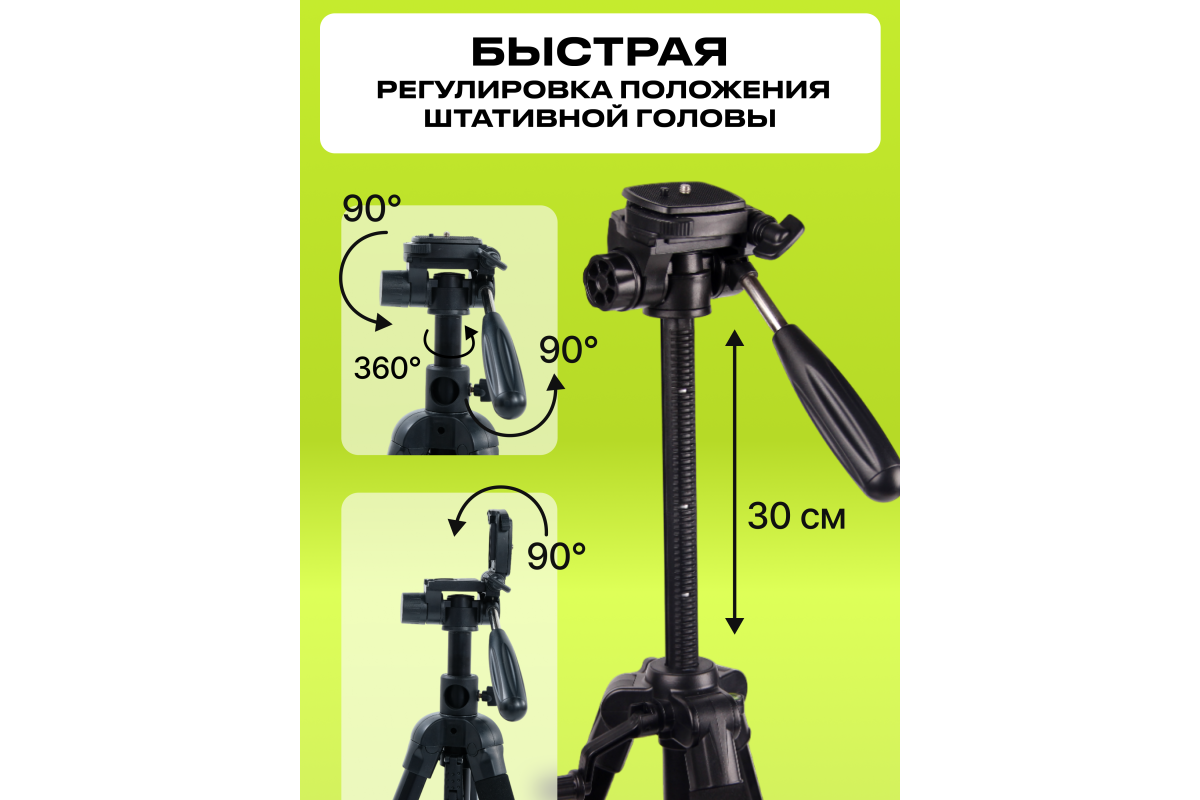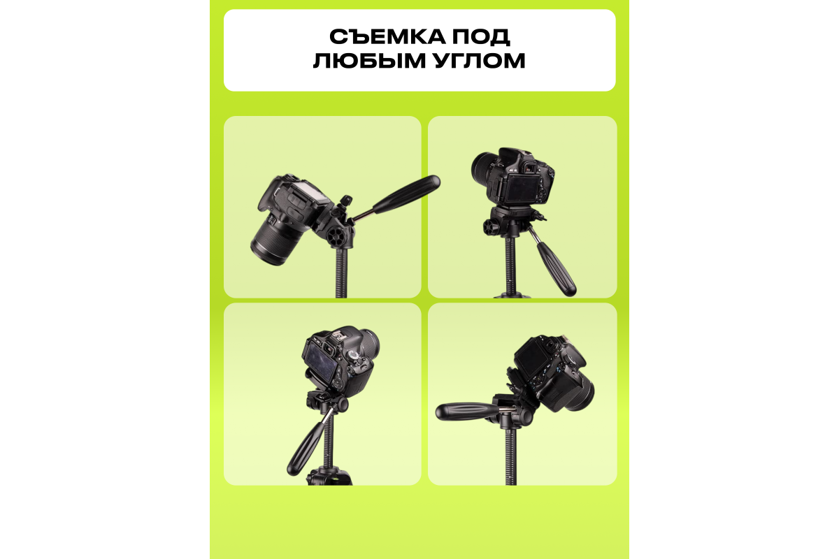 3D голова конструкции оснащена возможностью независимой регулировки в трех плоскостях. Благодаря такой особенности, фотограф может контролировать съемку. Случайные смещения исключены.