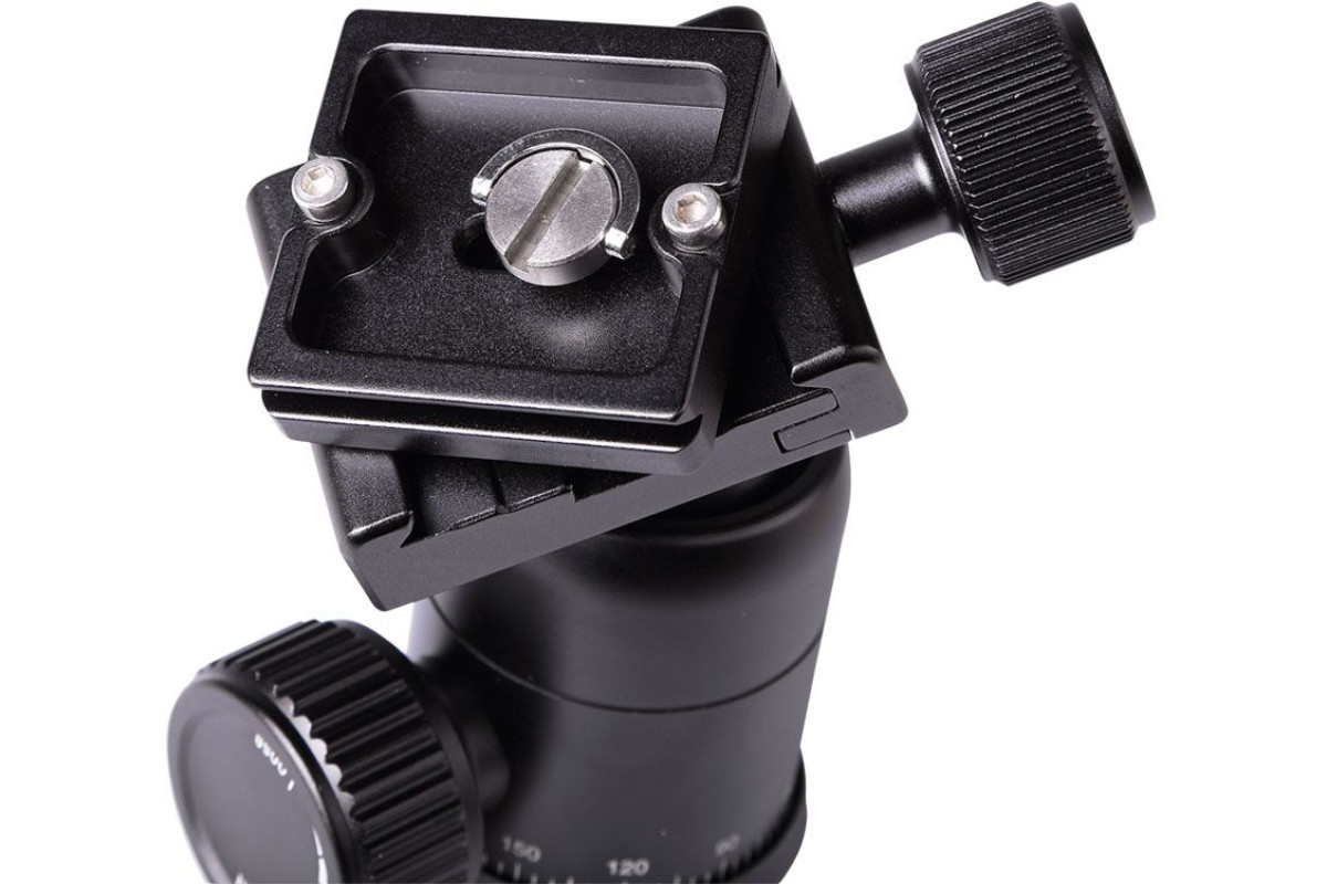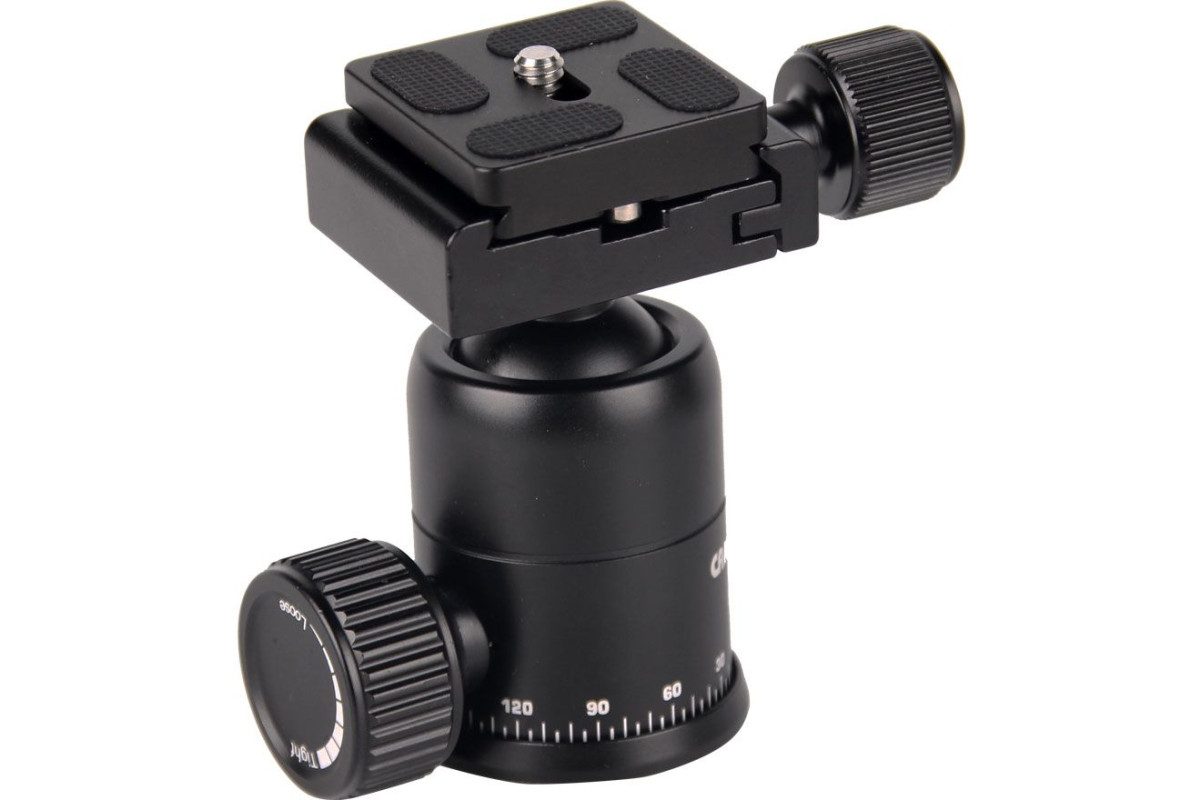 Свободное движение шара позволяет плавно перемещать и наклонять камеру по горизонтали - до 360° и вертикали - до 90°. Наклон площадки закрепляется винтом с большой удобной рукояткой.