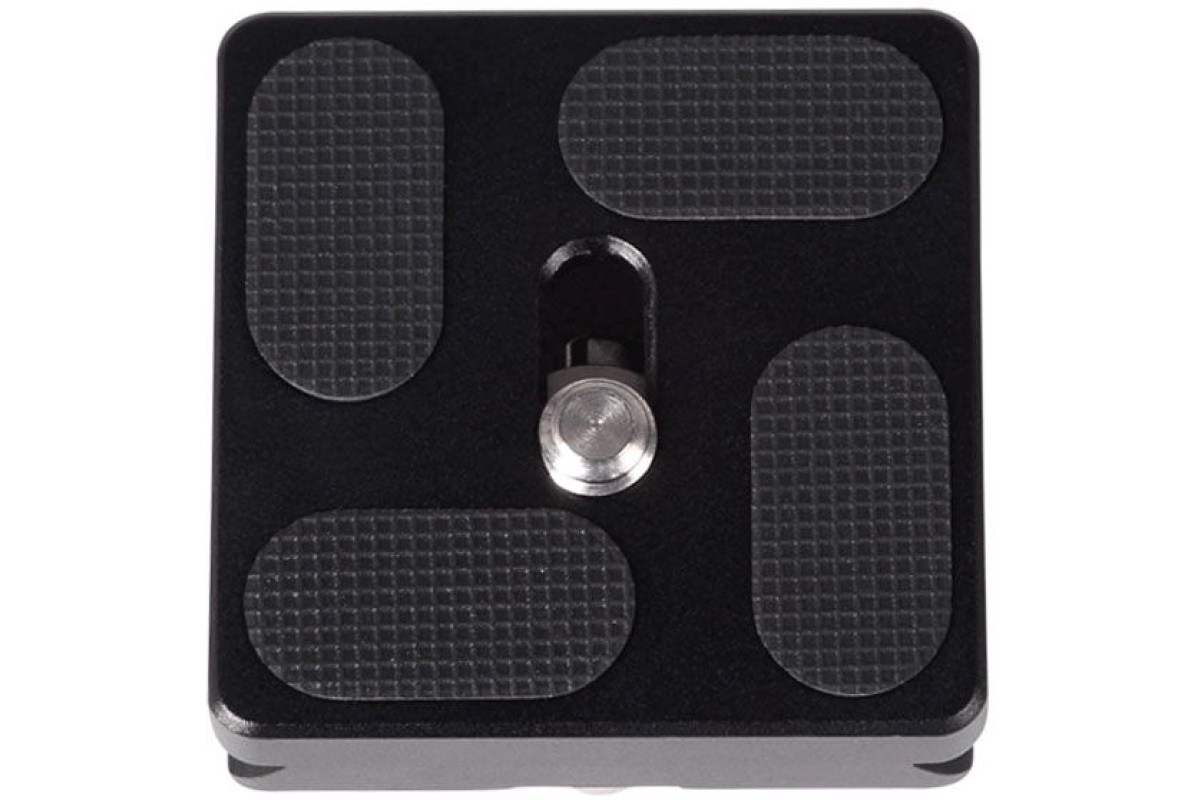 Площадка устанавливается в базу с пазами и фиксируется винтом. От случайного выпадения она застрахована 2 упорами. Для выравнивания положения камеры база оснащена пузырьковым уровнем.