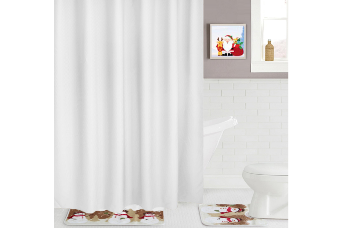 Комплект: Штора для ванной, кольца для установки шторы.