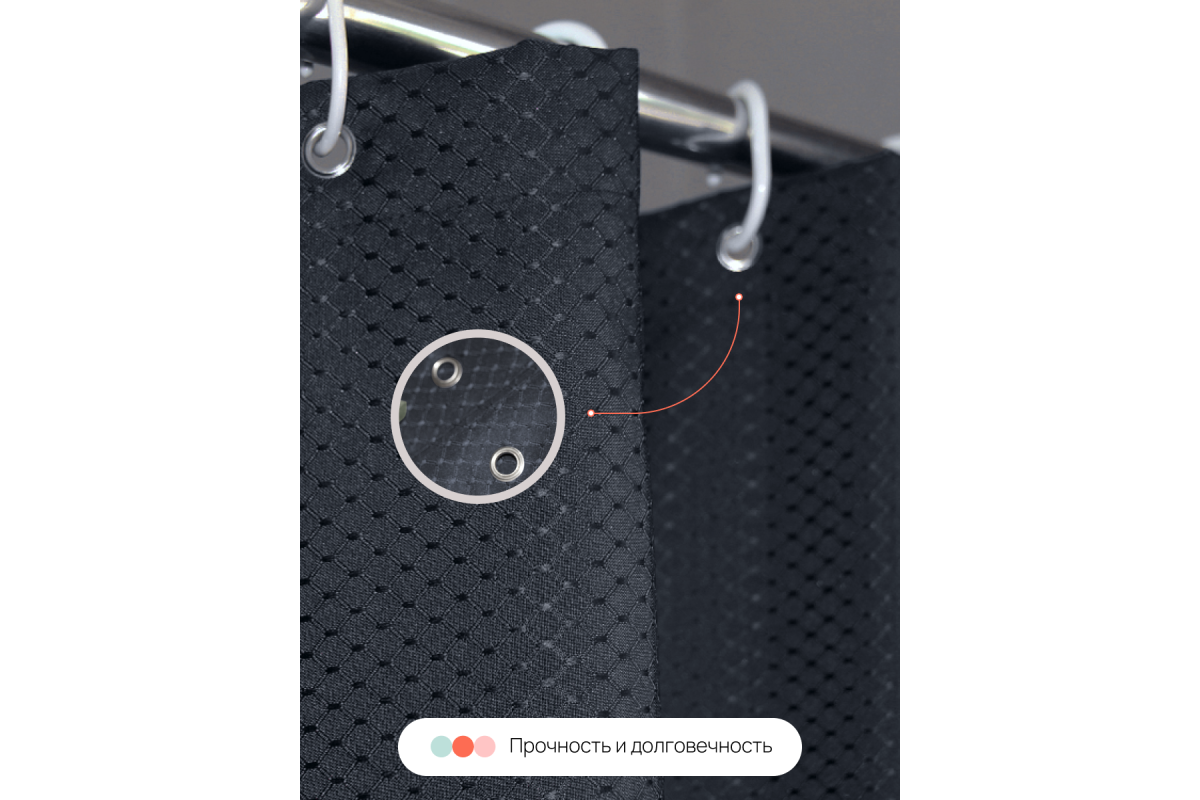 Штора для ванной с приятной "плетеной" текстурой материала и лаконичным дизайном прекрасно впишется в интерьер ванной комнаты. Штора имеет водоотталкивающие свойства, ее поверхность не выделяет неприятного запаха, легко чистится, не впитывает загрязнения. Штора изготовлена из полиэстера, который придает изделию прочность и неприхотливость, долго сохраняет форму и внешний вид изделия, быстро сохнет.