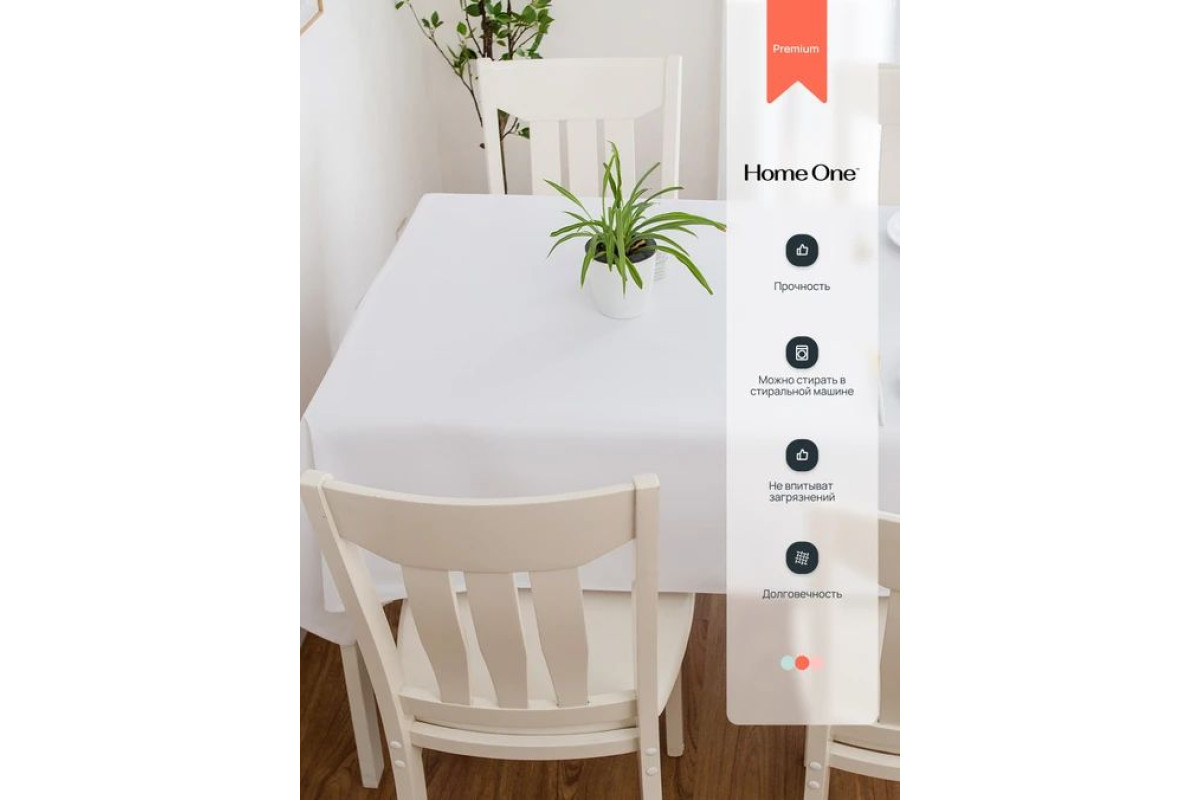 Скатерть Home One с приятной текстурой материала и лаконичным дизайном прекрасно впишется в интерьер любой кухни или столовой. Скатерть имеет водоотталкивающие свойства, ее поверхность не выделяет неприятного запаха, легко чистится, не впитывает загрязнения. Скатерть изготовлена из полиэстера, который придает изделию прочность и долговечность, долго сохраняет форму и внешний вид изделия, можно стирать в стиральной машине, быстро сохнет. Размер изделия 213*150 см.