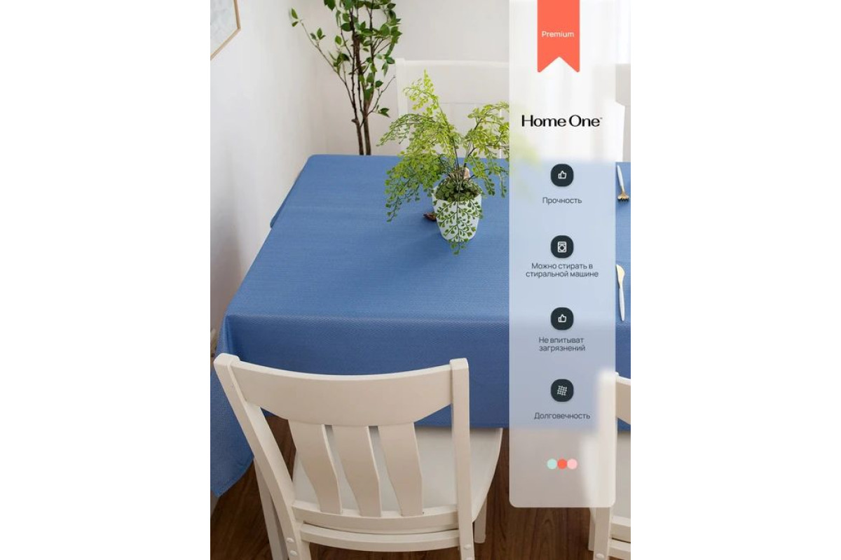 Скатерть Home One с приятной текстурой материала и лаконичным дизайном прекрасно впишется в интерьер любой кухни или столовой. Скатерть имеет водоотталкивающие свойства, ее поверхность не выделяет неприятного запаха, легко чистится, не впитывает загрязнения. Скатерть изготовлена из полиэстера, который придает изделию прочность и долговечность, долго сохраняет форму и внешний вид изделия, можно стирать в стиральной машине, быстро сохнет. Размер изделия 213*150 см.