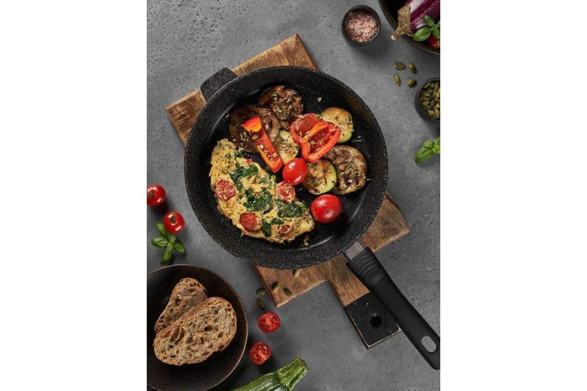 Сковорода Home One 24см с антипригарным покрытием идеальная посуда для приготовления вкусных и полезных блюд. Корпус сковородки, изготовленный из литого алюминия, защищен пятислойным антипригарным покрытием производства одного из мировых лидеров, фирмы "PFLUON". Защитное наружное покрытие с включением кристаллов минералов внешне имитирует фактуру природного камня и увеличивает устойчивость рабочей поверхности к царапинам. Экологическое антипригарное покрытие «PFLUON» на водной основе безопасно для человека, безвредно для окружающей среды. В его составе нет PFOA (перфтороктановой кислоты), поэтому при нагревании не выделяются вредные вещества. Для приготовления блюд требуется минимальное количество масла, что сохраняет естественный вкус натуральных продуктов. Сковорода Home One с антипригарным покрытием имеет ровное, шлифованное дно, которое обеспечивает максимальное прилегание дна посуды к плите для быстрого и равномерного нагрева и уменьшения расхода электроэнергии или газа. Значительная толщина стенок и дна исключает деформацию корпуса изделий, гарантирует долговечность посуды, обеспечивает необходимую прочность покрытия. Подходит для всех типов плит, кроме индукционных. Можно мыть в посудомоечной машине в режиме Eco (не выше 50 градусов) и использовать моющие средства с уровнем pH, близким к нейтральному (в диапазоне 6-8).