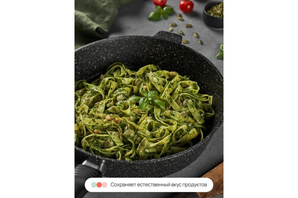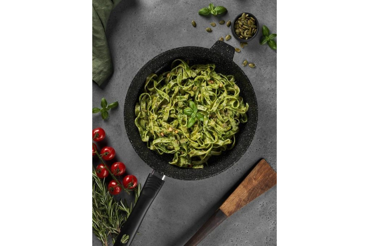 Сковорода Home One 26см с антипригарным покрытием идеальная посуда для приготовления вкусных и полезных блюд. Корпус сковородки, изготовленный из литого алюминия, защищен пятислойным антипригарным покрытием производства одного из мировых лидеров, фирмы "PFLUON". Защитное наружное покрытие с включением кристаллов минералов внешне имитирует фактуру природного камня и увеличивает устойчивость рабочей поверхности к царапинам. Экологическое антипригарное покрытие «PFLUON» на водной основе безопасно для человека, безвредно для окружающей среды. В его составе нет PFOA (перфтороктановой кислоты), поэтому при нагревании не выделяются вредные вещества. Для приготовления блюд требуется минимальное количество масла, что сохраняет естественный вкус натуральных продуктов. Сковорода Home One с антипригарным покрытием имеет ровное, шлифованное дно, которое обеспечивает максимальное прилегание дна посуды к плите для быстрого и равномерного нагрева и уменьшения расхода электроэнергии или газа. Значительная толщина стенок и дна исключает деформацию корпуса изделий, гарантирует долговечность посуды, обеспечивает необходимую прочность покрытия. Подходит для всех типов плит, кроме индукционных. Можно мыть в посудомоечной машине в режиме Eco (не выше 50 градусов) и использовать моющие средства с уровнем pH, близким к нейтральному (в диапазоне 6-8).