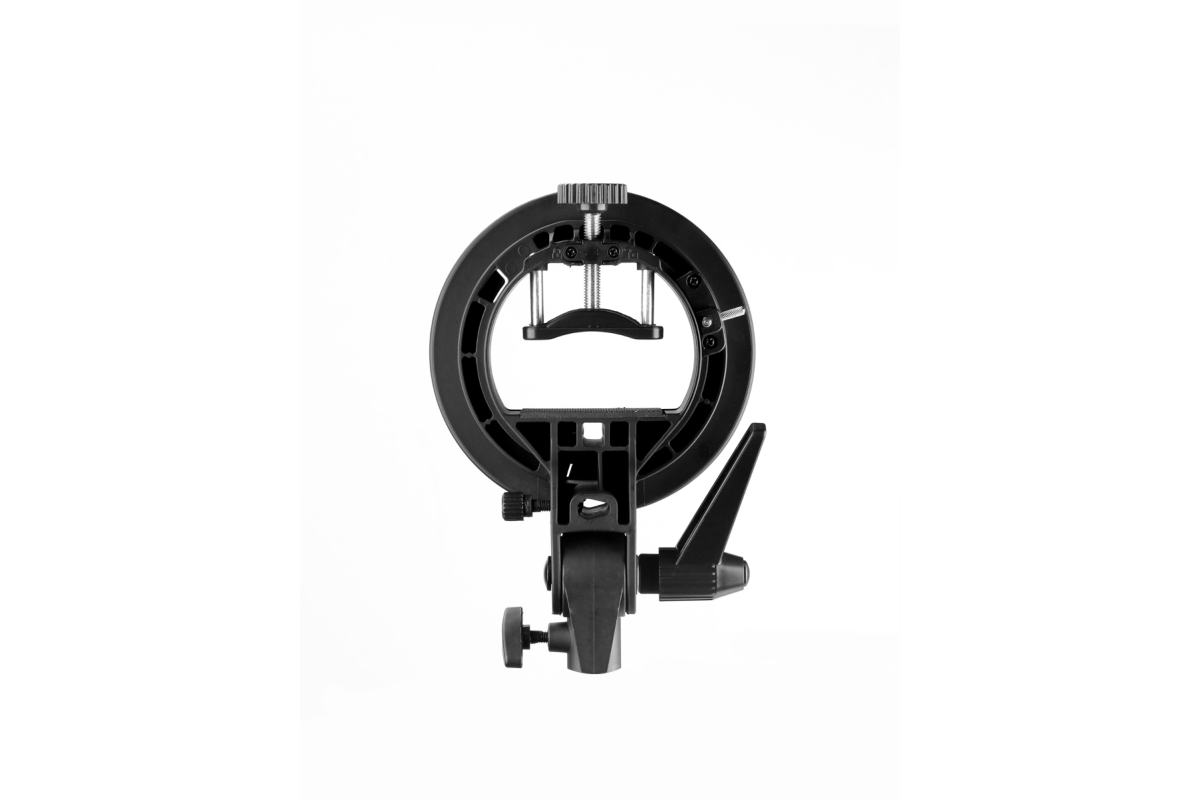 На адаптере в комплекте используется байонетное крепление Bowens, что позволяет его использовать с широким спектром аксессуаров, таких как портретные тарелки, стрипбоксы, октабоксы и многие другие. На креплении есть дополнительное отверстие для фотозонта.