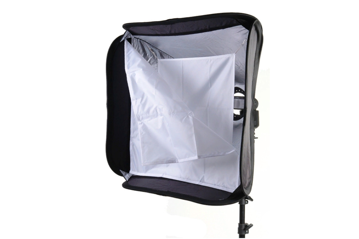 Софтбокс легко и быстро раскладывается (стенки растянуты на металлических упругих ребрах, рассеиватель крепится на липучку), благодаря чему найдет применение не только в студии, но и на выездной съемке. Эффективно используется во всех жанрах (репортаж, портрет, предметная съемка и др.).