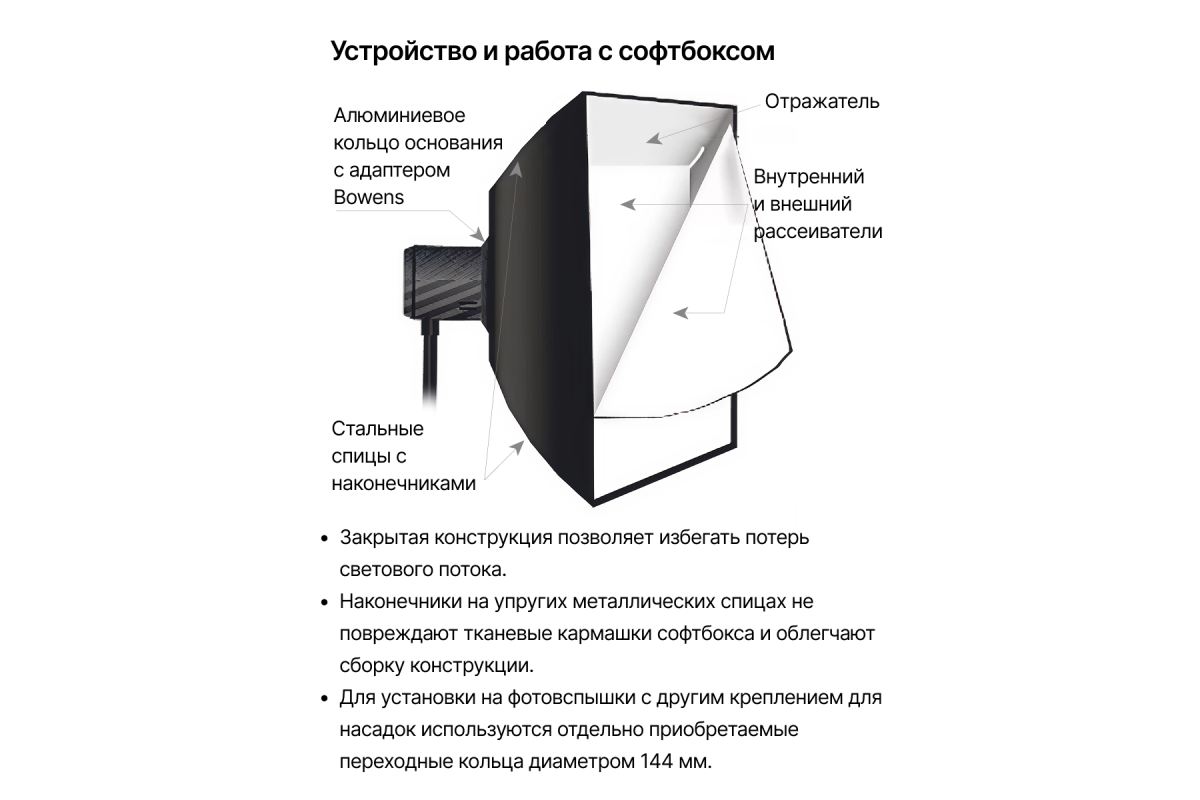 Cофтбокс, размер 30х120 см, отражающая поверхность - серебро, байонет Bowens.