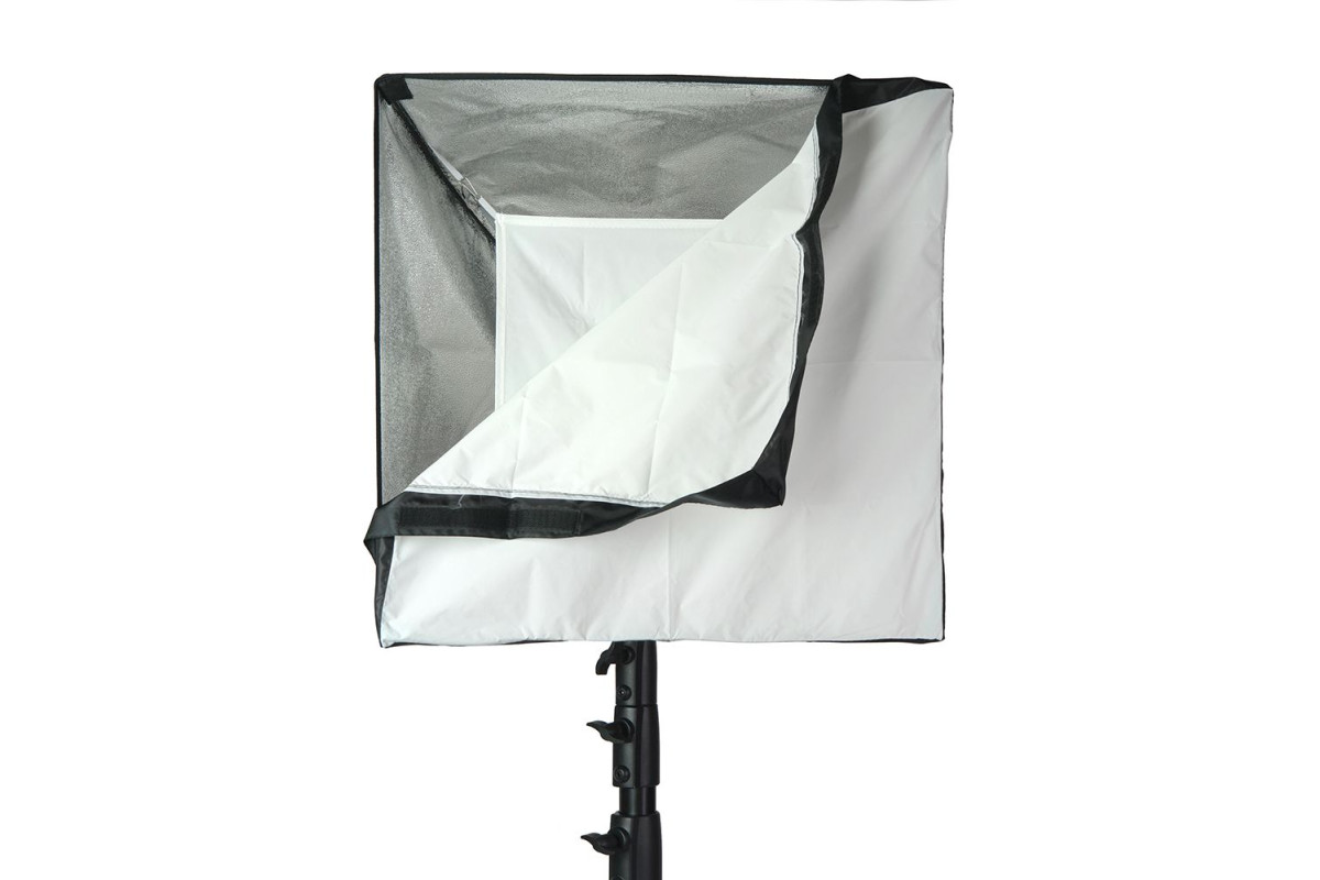 Закрытая конструкция позволяет избежать нежелательных бликов и потерь светового потока. Отражатель, с серебристой тканью внутри, обеспечивает равномерную засветку рассеивателя, который в свою очередь, благодаря большой поверхности, смягчает формируемые тени. Дополнительный внутренний диффузор улучшает равномерность светового потока. Наконечники на упругих металлических спицах не повреждают тканевые спицедержатели софтбокса и облегчают сборку конструкции.