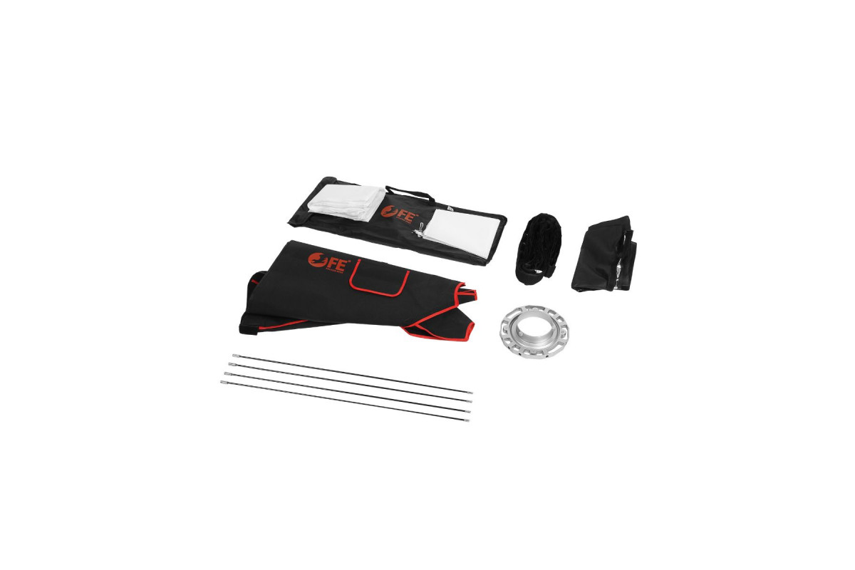 Каркас софтбокса выполнен из качественной жаропрочной синтетической ткани с серебристой поверхностью, рассчитанной на длительную эксплуатацию при интенсивной работе в студии. Плотная ткань каркаса позволяет избежать нежелательных бликов и потерь светового потока, что бывает заметно у софтбоксов нежаропрочного типа (особенно в зоне крепления источника света).