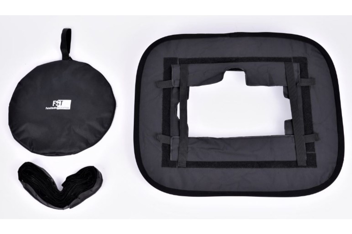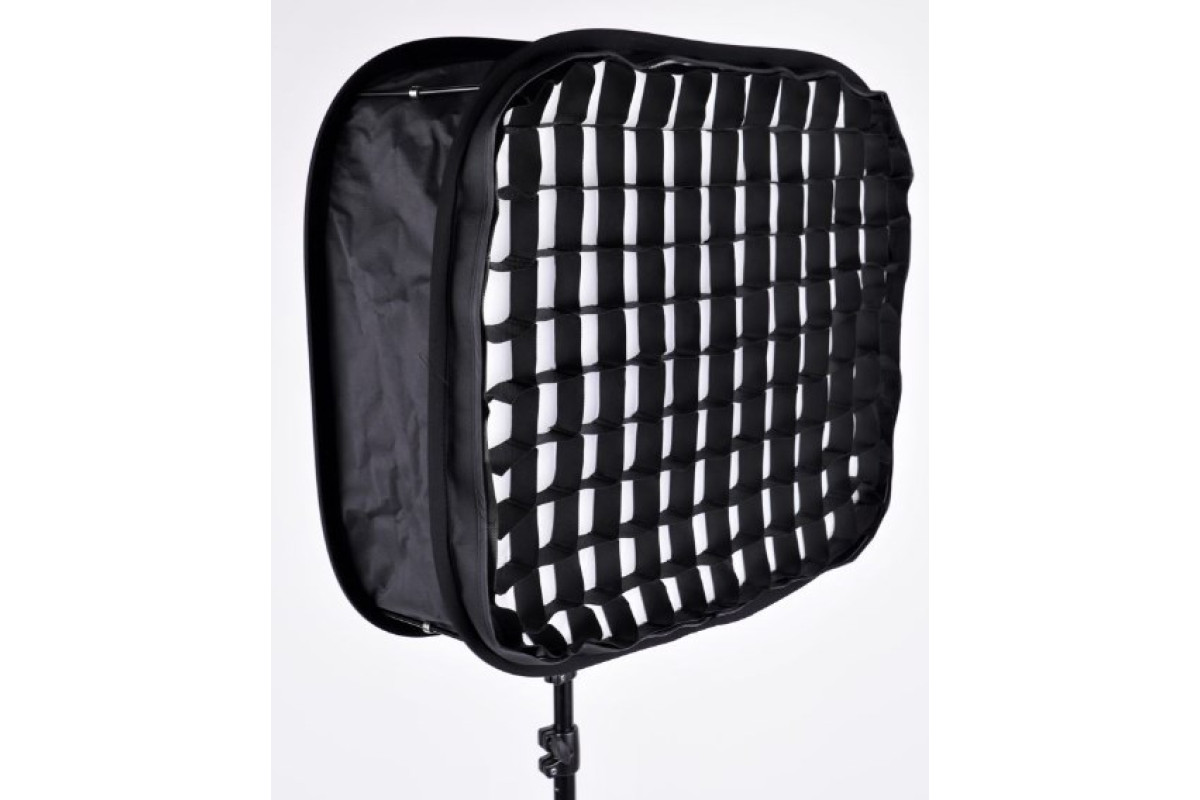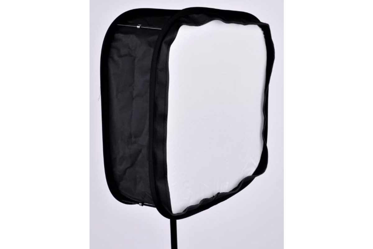 Складной софтбокс на пружине. Оборудован внешним рассеивателем и сотами для создания более мягкого и более направленного светового потока. Мягкий чехол в комплекте.