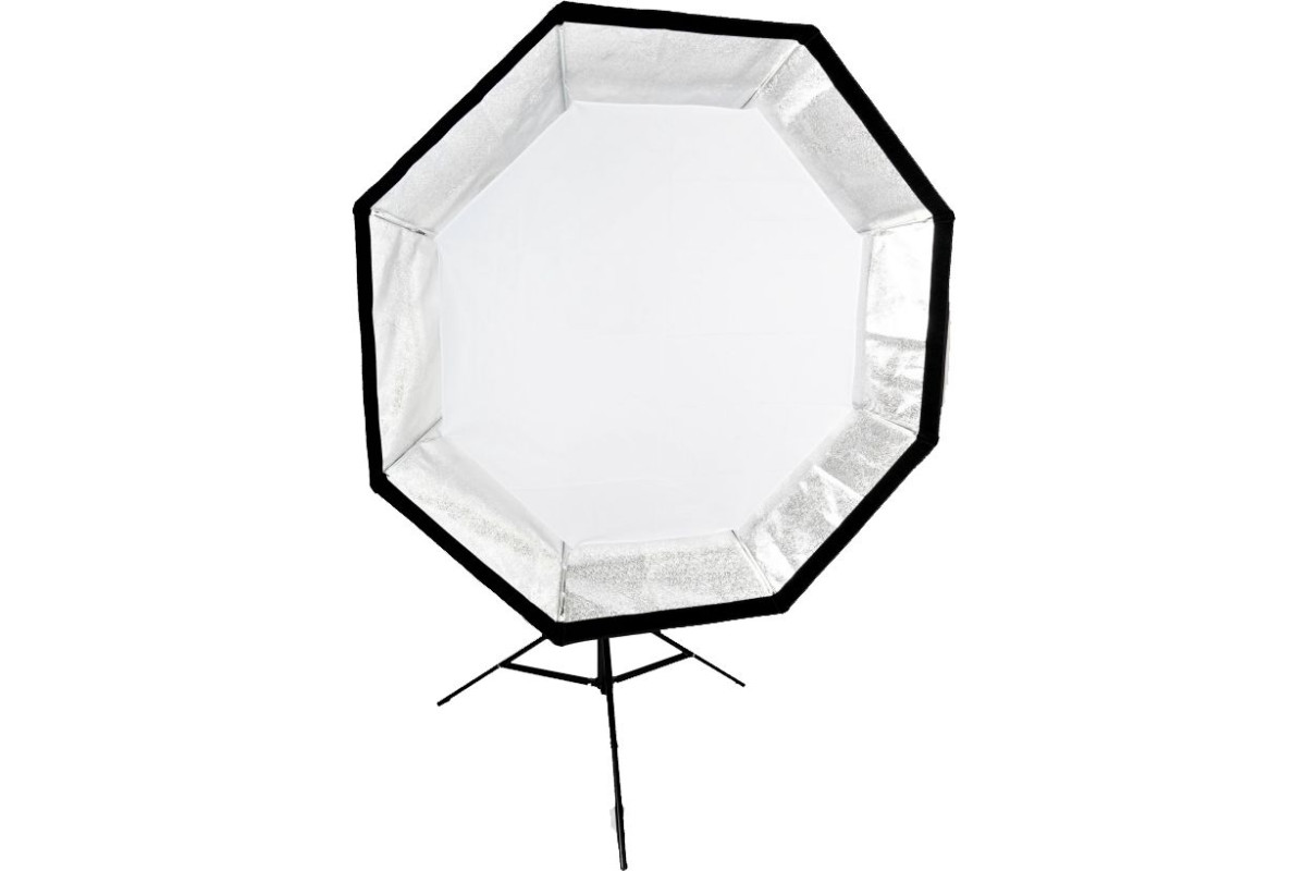 Быстрораскладная конструкция зонтичного типа позволяет подготовить октабокс для съемки за считанные секунды, что делает его незаменимым помощником и на выездных фотосессиях.