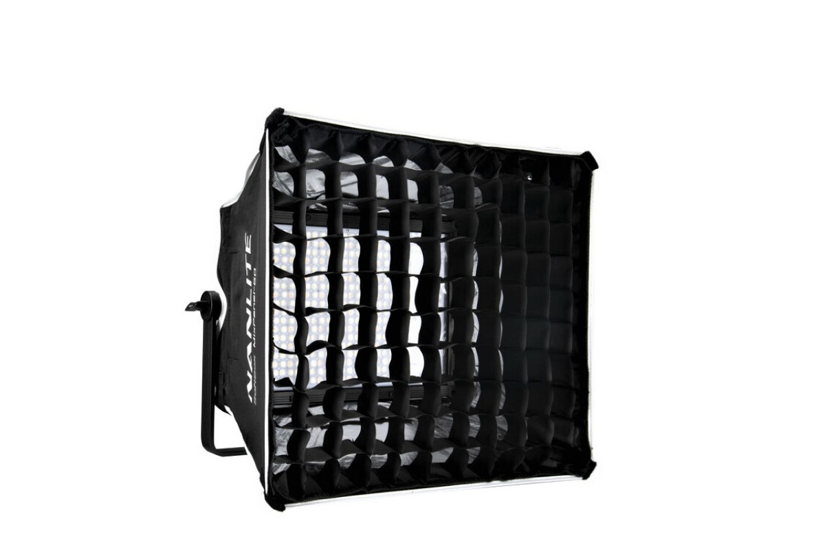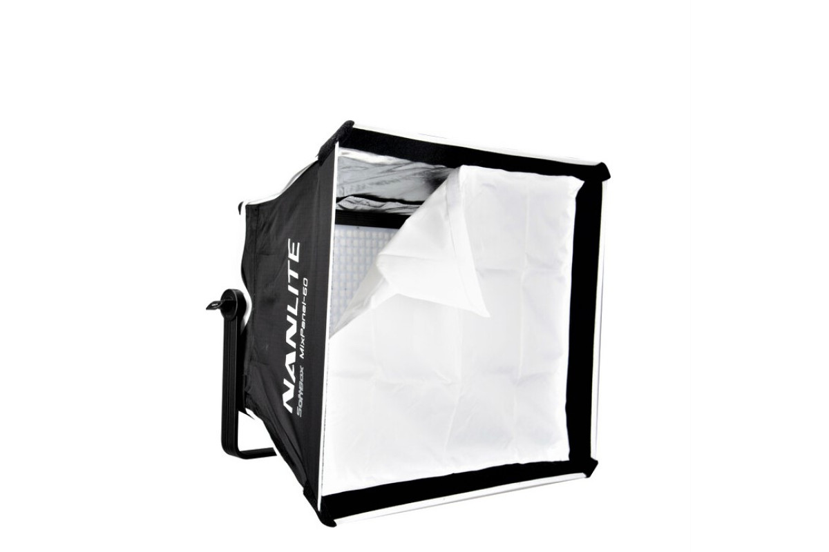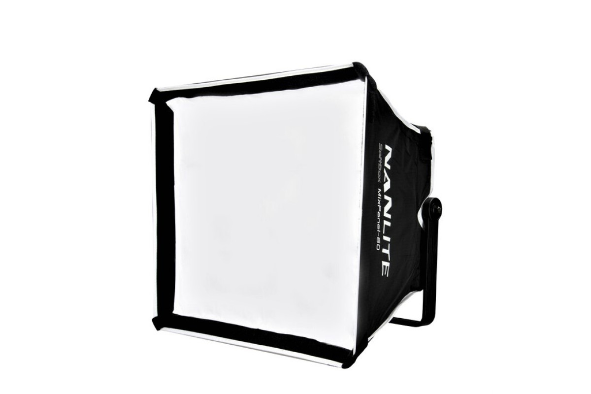 Софтбокс Nanlite MixPanel 60 устанавливается непосредственно на прибор с помощью фиксаторов и смягчает яркость светодиодов, а также снижает контраст.