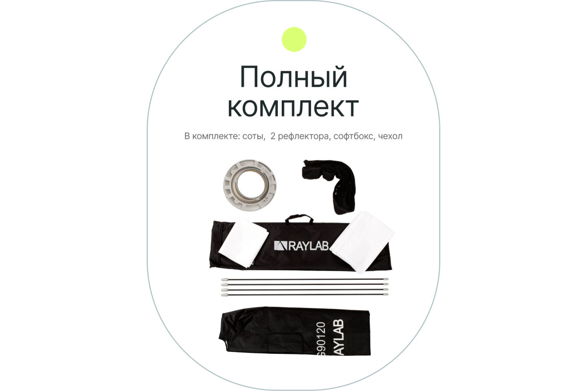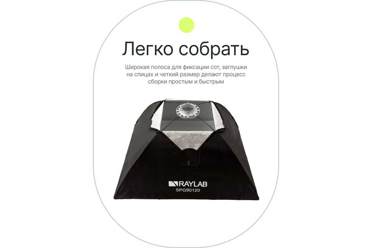 Софтбокс Raylab SPG90120 это световой модификатор для импульсных осветительных приборов с байонетом Bowens, предназначенный для создания мягкого рассеянного освещения без резких теней и бликов. Размер софтбокса 90х120 см.