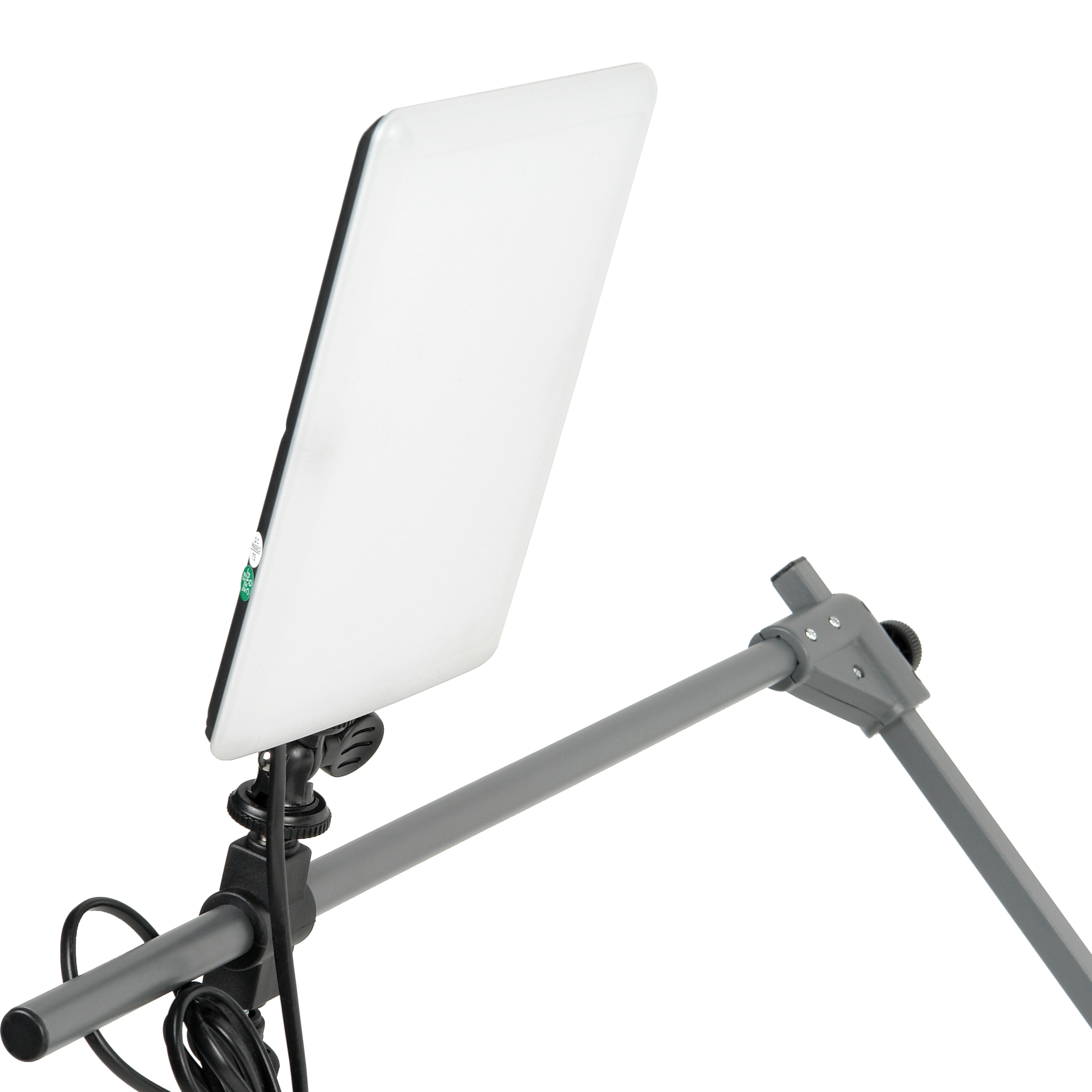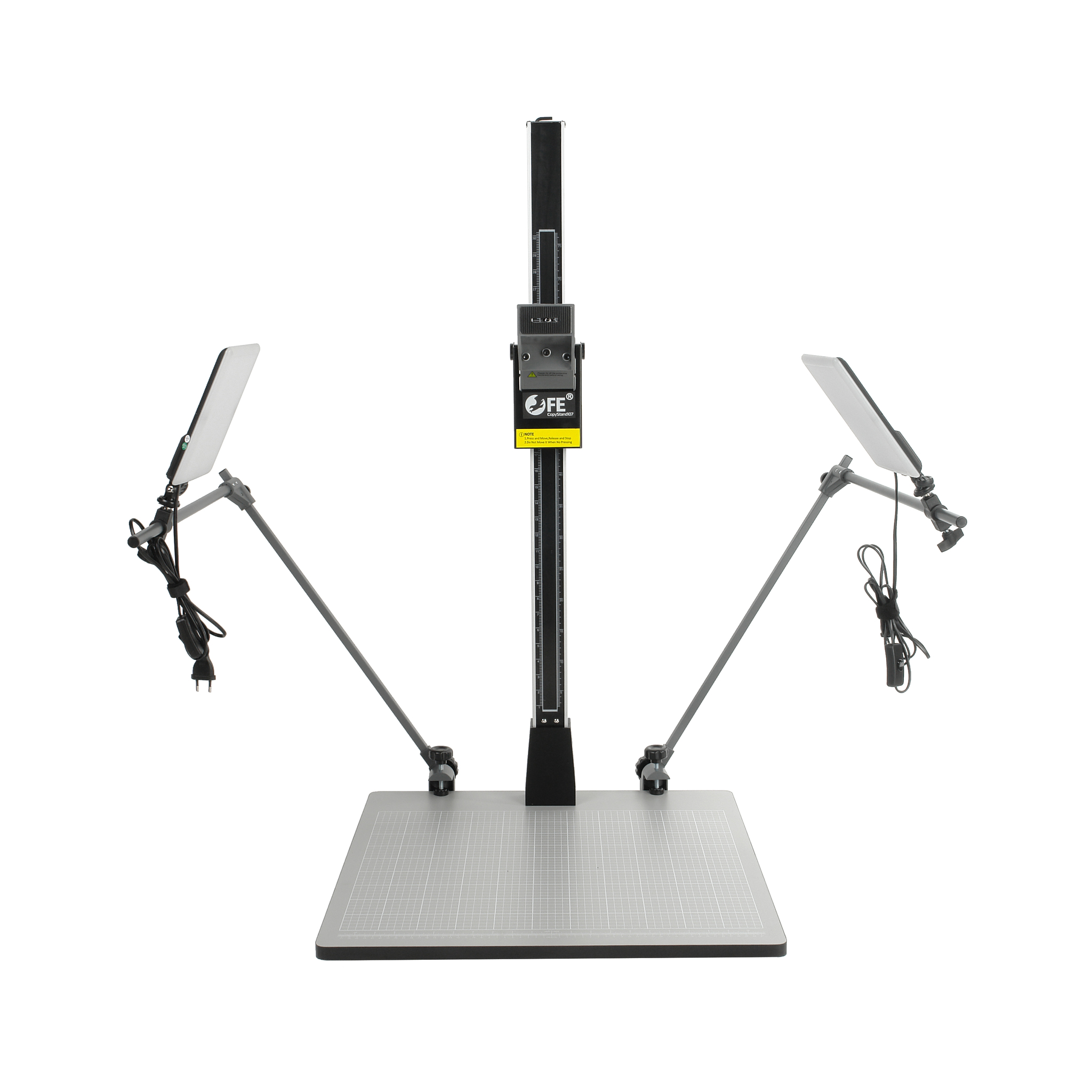 Стенд оснащается двумя светодиодными панелями с регулируемыми монтажными кронштейнами, которые обеспечивают яркое равномерное бестеневое освещение объекта. Благодаря 96 SMD-сведотиодам (каждого осветителя) с цветовой температурой 5600К и индексом цветопередачи CRI≥97, отснятый материал будет иметь максимально точную передачу цветов и оттенков.