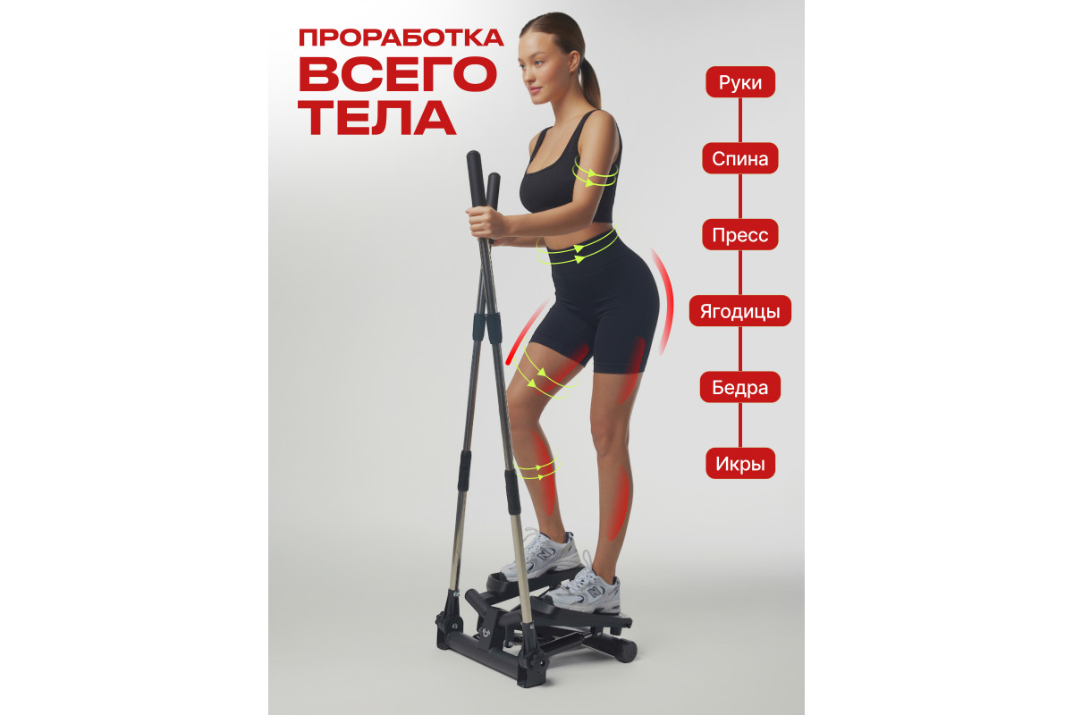 Степпер имитирует скандинавскую и лыжную ходьбу, задействованы все мыщцы тела.