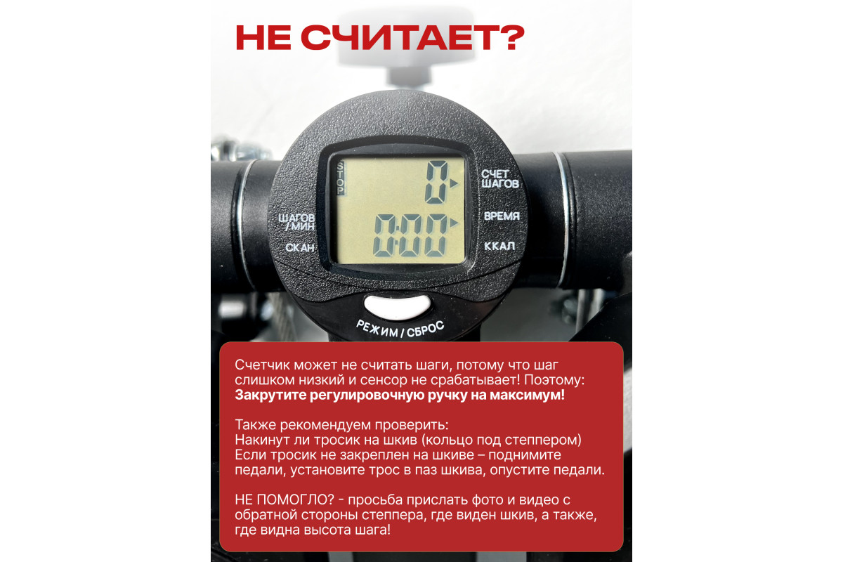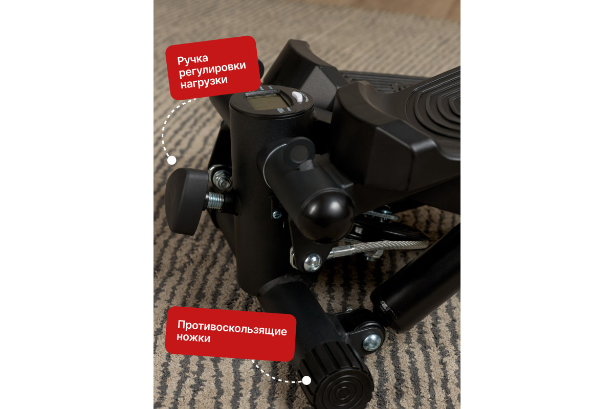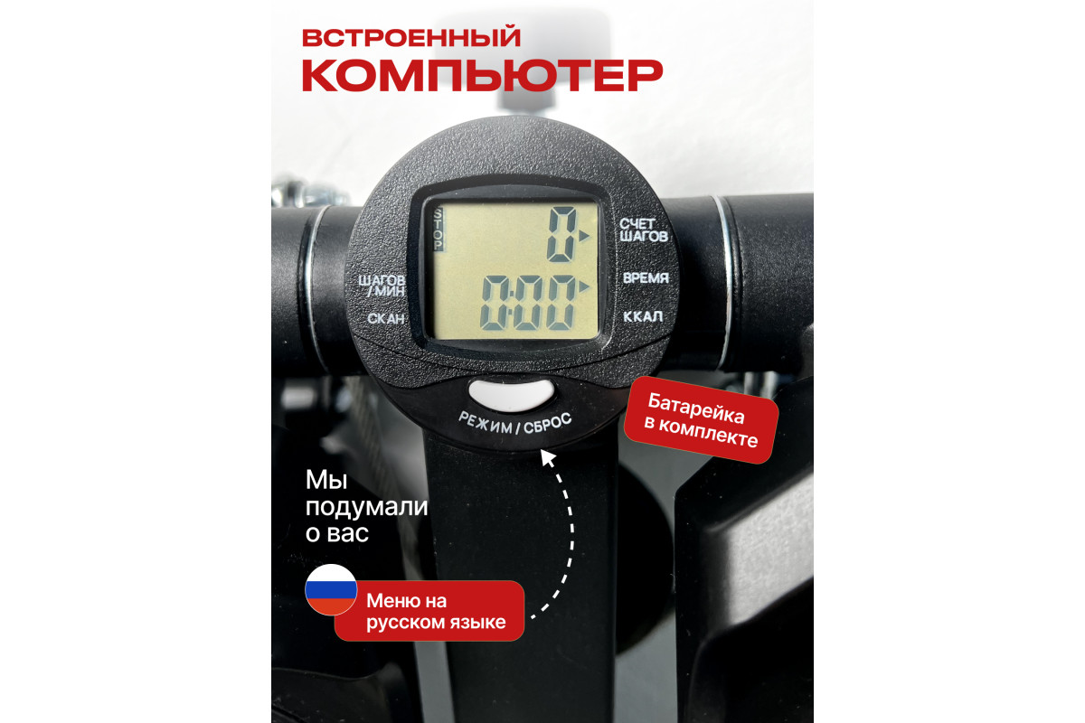 • Цифровой дисплей на русском языке: отслеживает время тренировки, количество шагов, кол-во шагов в минуту и сожженные калории.