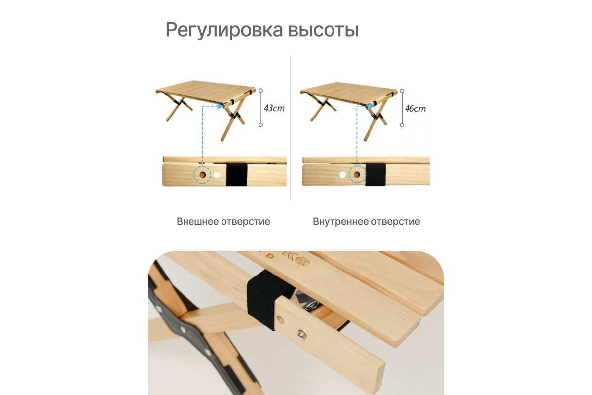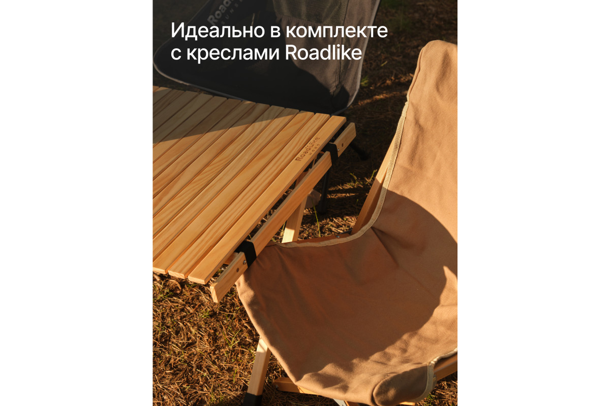 Стол туристический RoadLike Wood - размер 90*60*41см. Складной стол выполнен из натуральных материалов: каркас из 100% Сосны. Прочный и гладкий высококачественный каркас из цельного дерева обеспечивает стабильность и долговечность этого стола для кемпинга. Вся металлическая фурнитура устойчива к ржавчине и долговечна, а соединения надежны. Стол удобный по форме и стильный по дизайну, обладает отличной грузоподъемностью до 45кг.Складной стол RoadLike Wood для кемпинга можно хранить в машине в удобном чехле размером 90*23*23см. RoadLike Wood - серия туристической мебели для красивого отдыха!