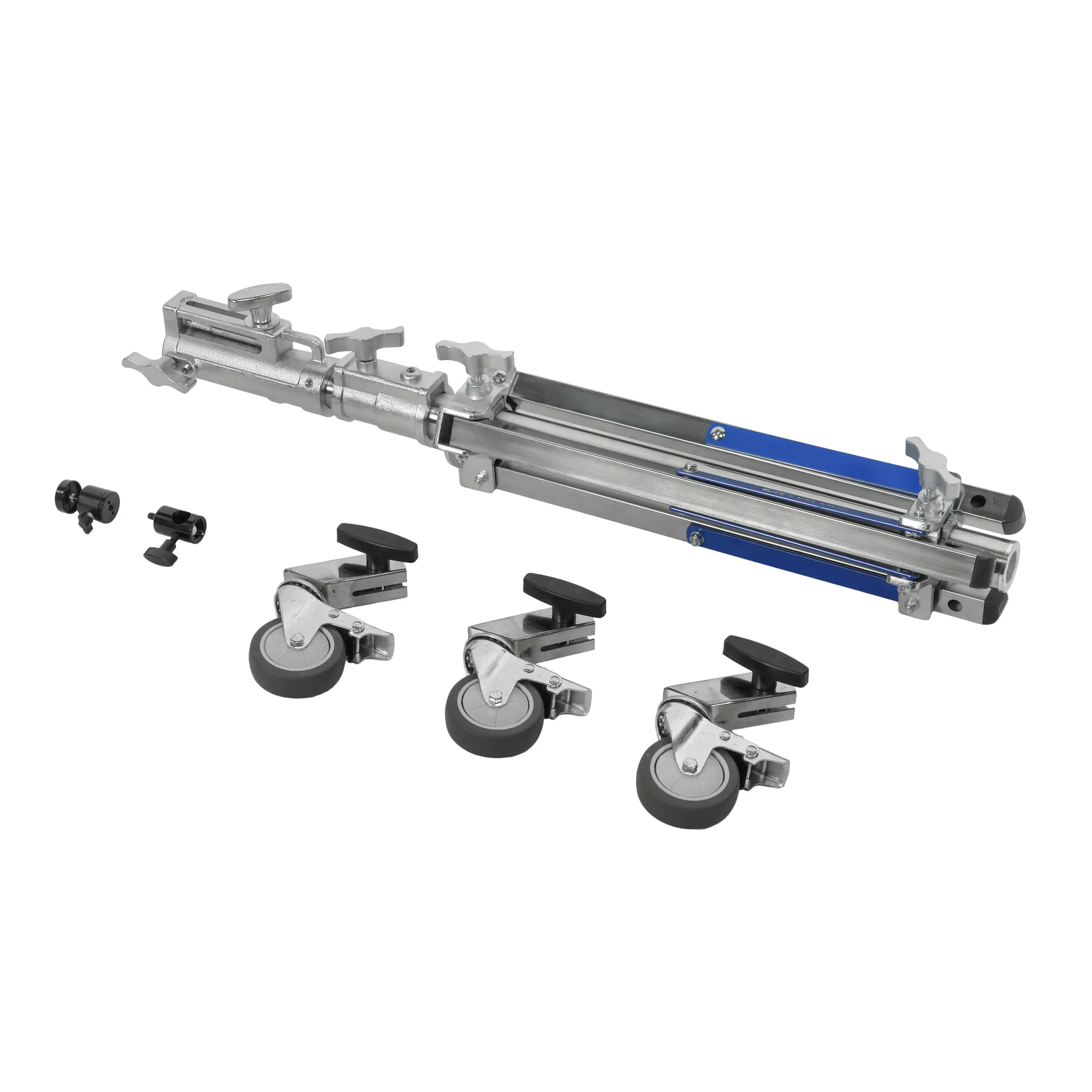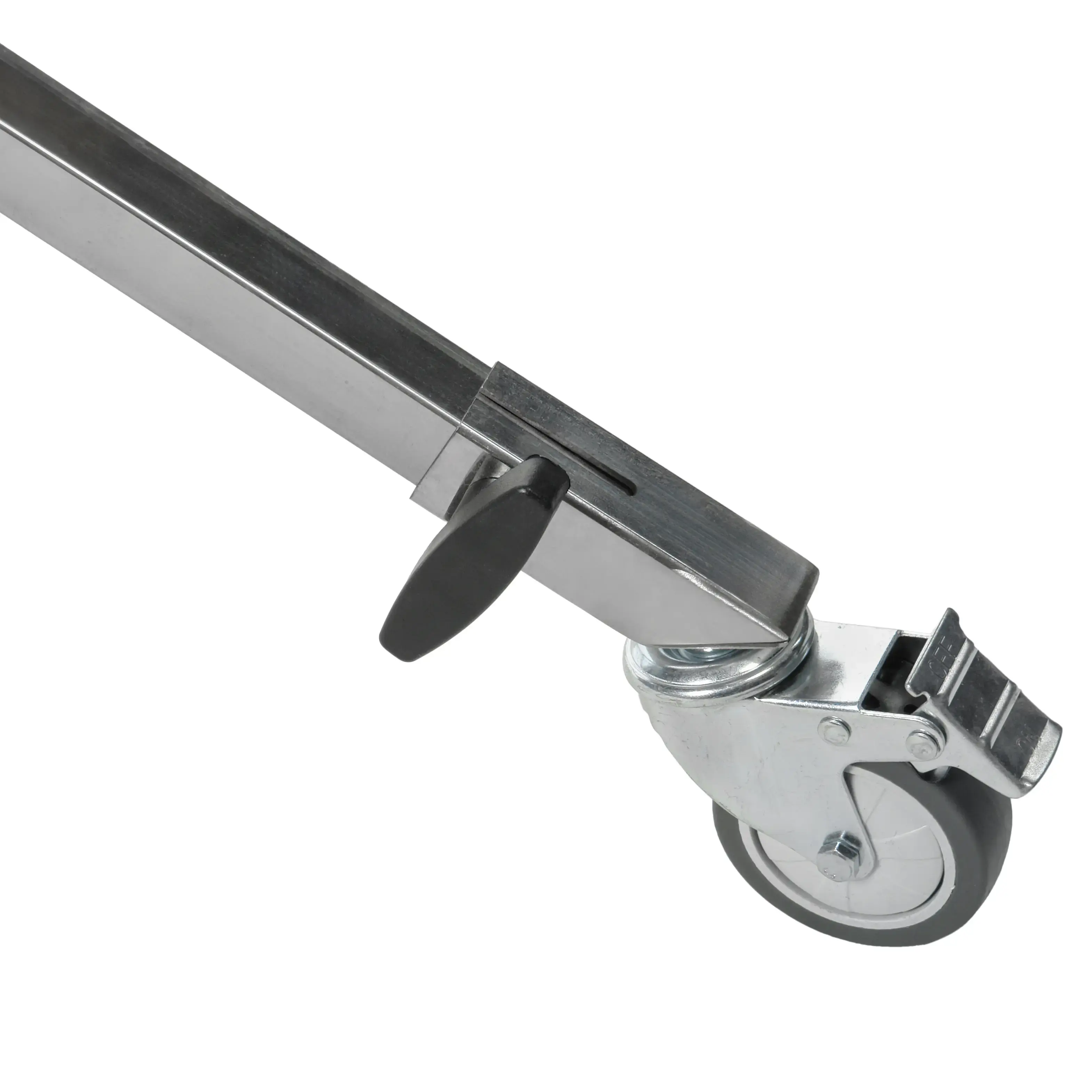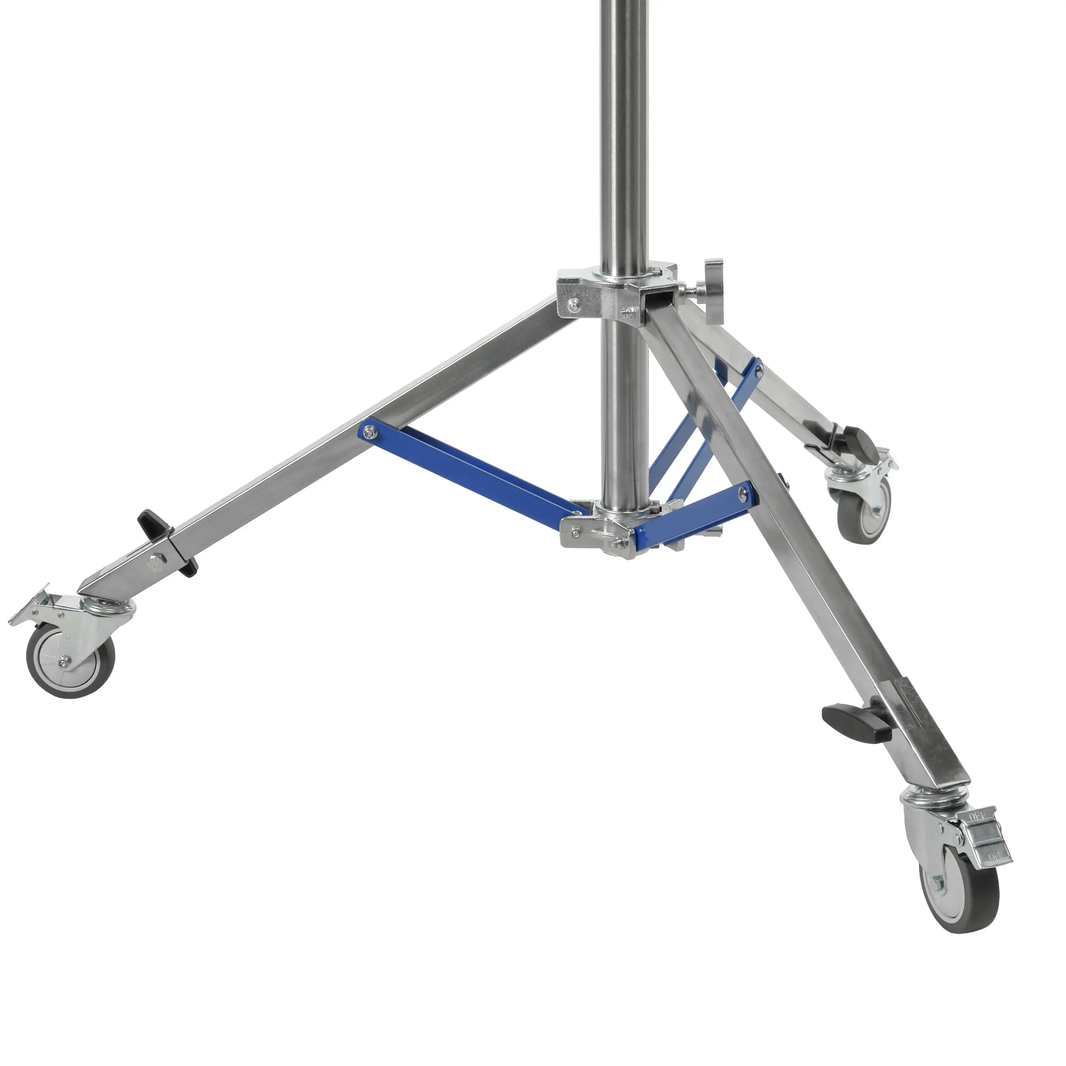 Перемещение стойки обеспечивают три съемных колеса, а безопасную неподвижную установку — индивидуальные тормоза на каждом из них. Это позволяет мгновенно зафиксировать положение тяжелой камеры на любом этапе работы. Для стационарного использования стойки колеса могут быть демонтированы.