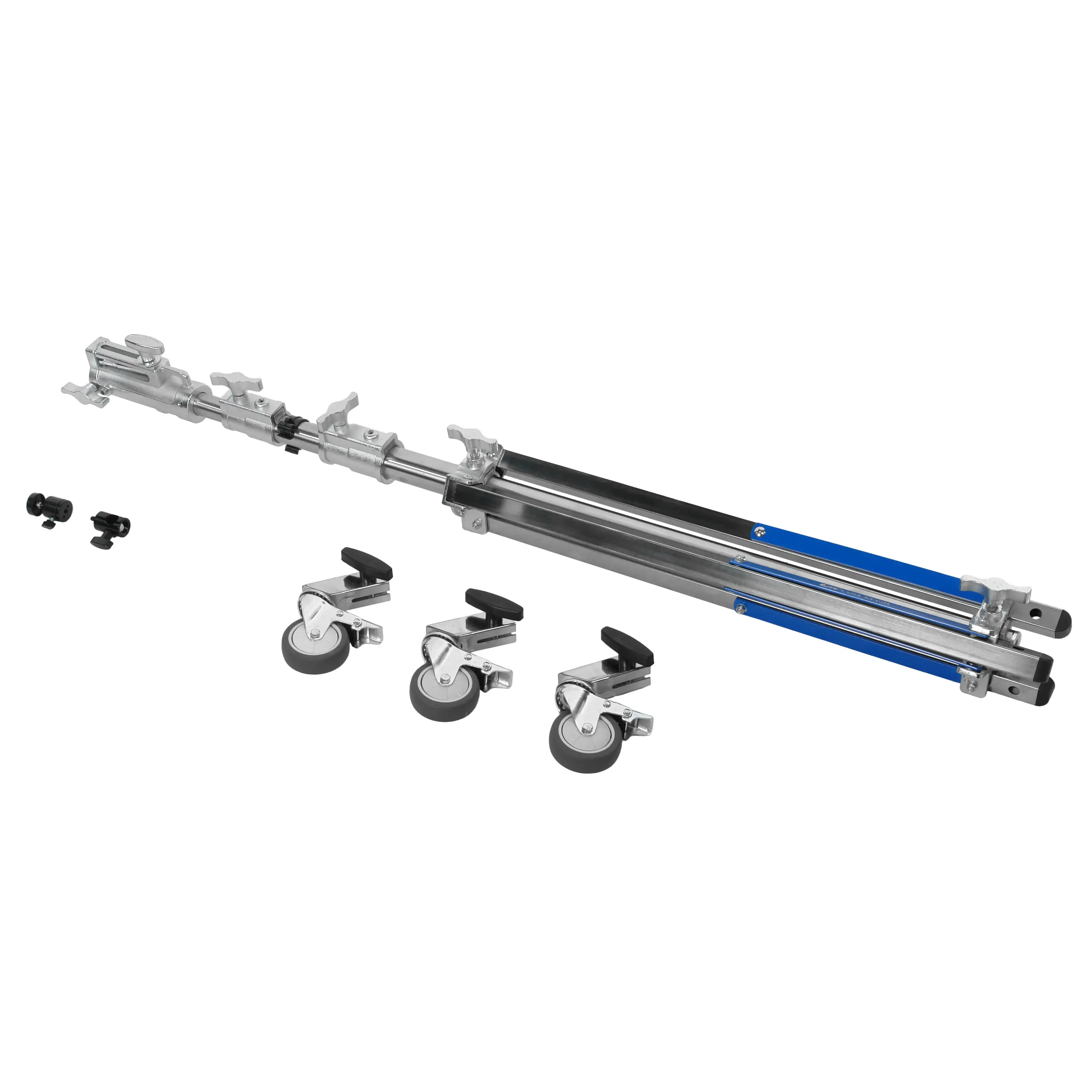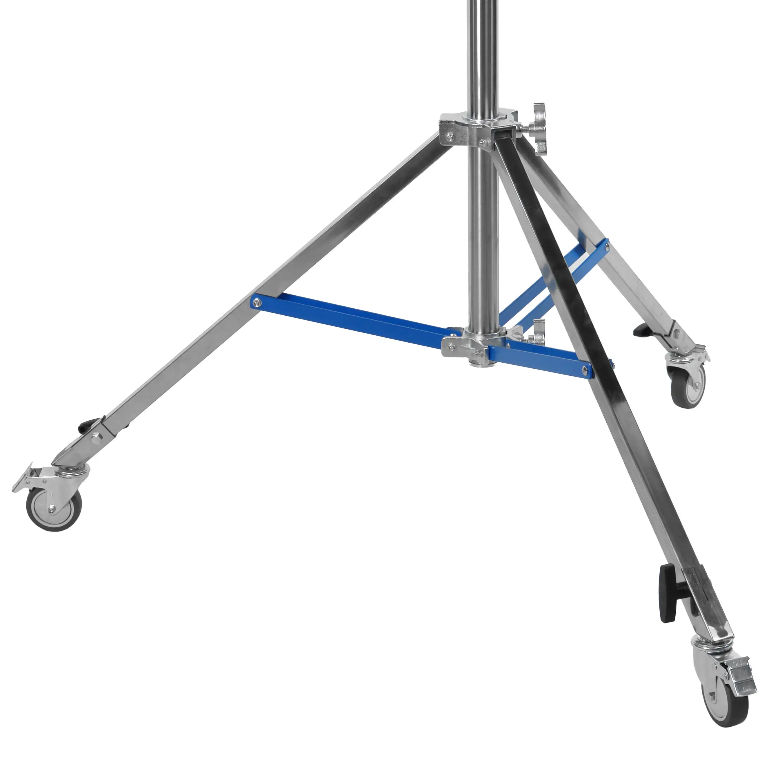 Перемещение стойки обеспечивают три съемных колеса, а безопасную неподвижную установку — индивидуальные тормоза на каждом из них. Это позволяет мгновенно зафиксировать положение тяжелой камеры на любом этапе работы. Для стационарного использования стойки колеса могут быть демонтированы.