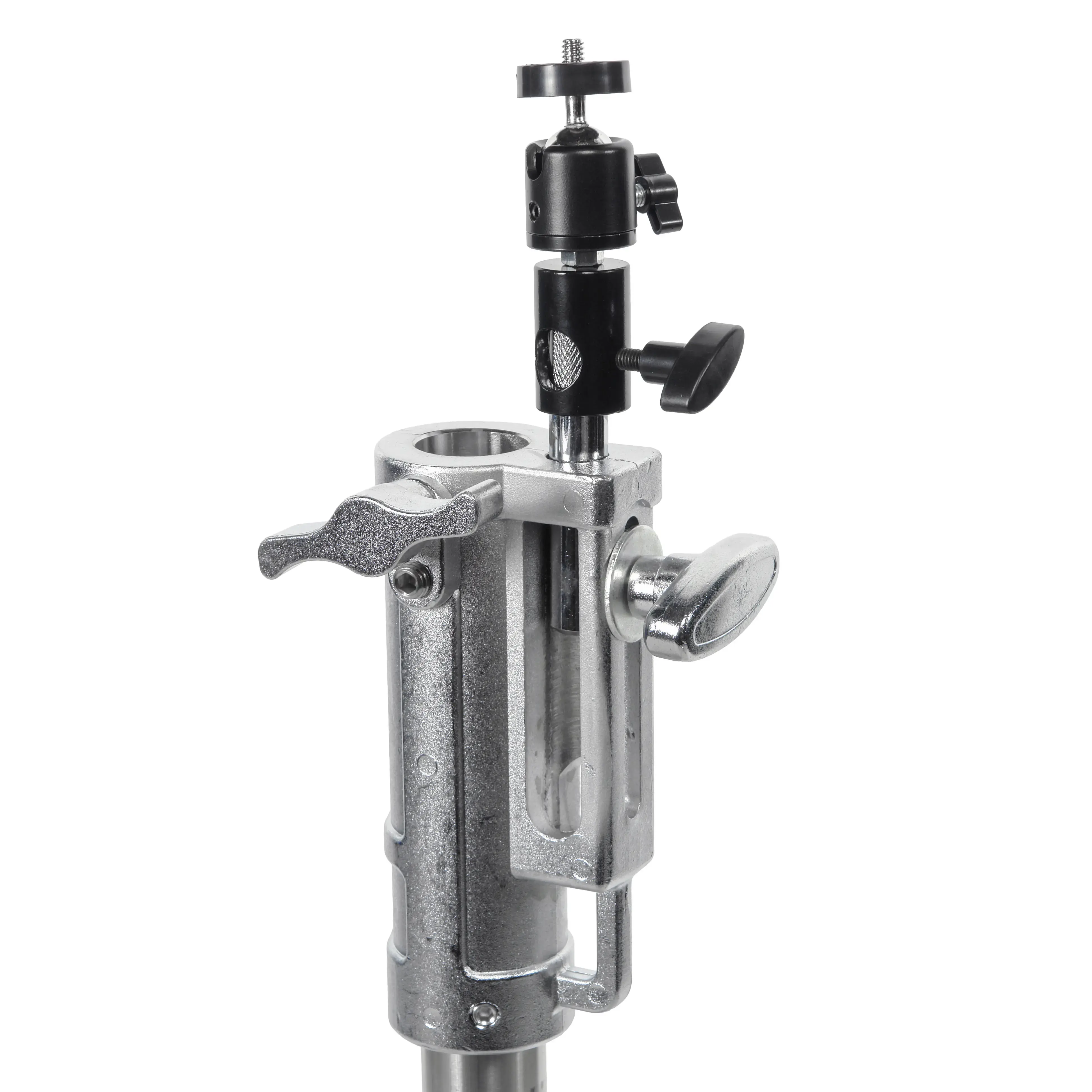 Стойка LVM-M оборудована шаровой головкой для панорамирования камеры на 360°. Монтаж осуществляется через комбинированный адаптер: штифт Baby Pin 5/8" с винтовым фиксатором и стандартное гнездо Junior.