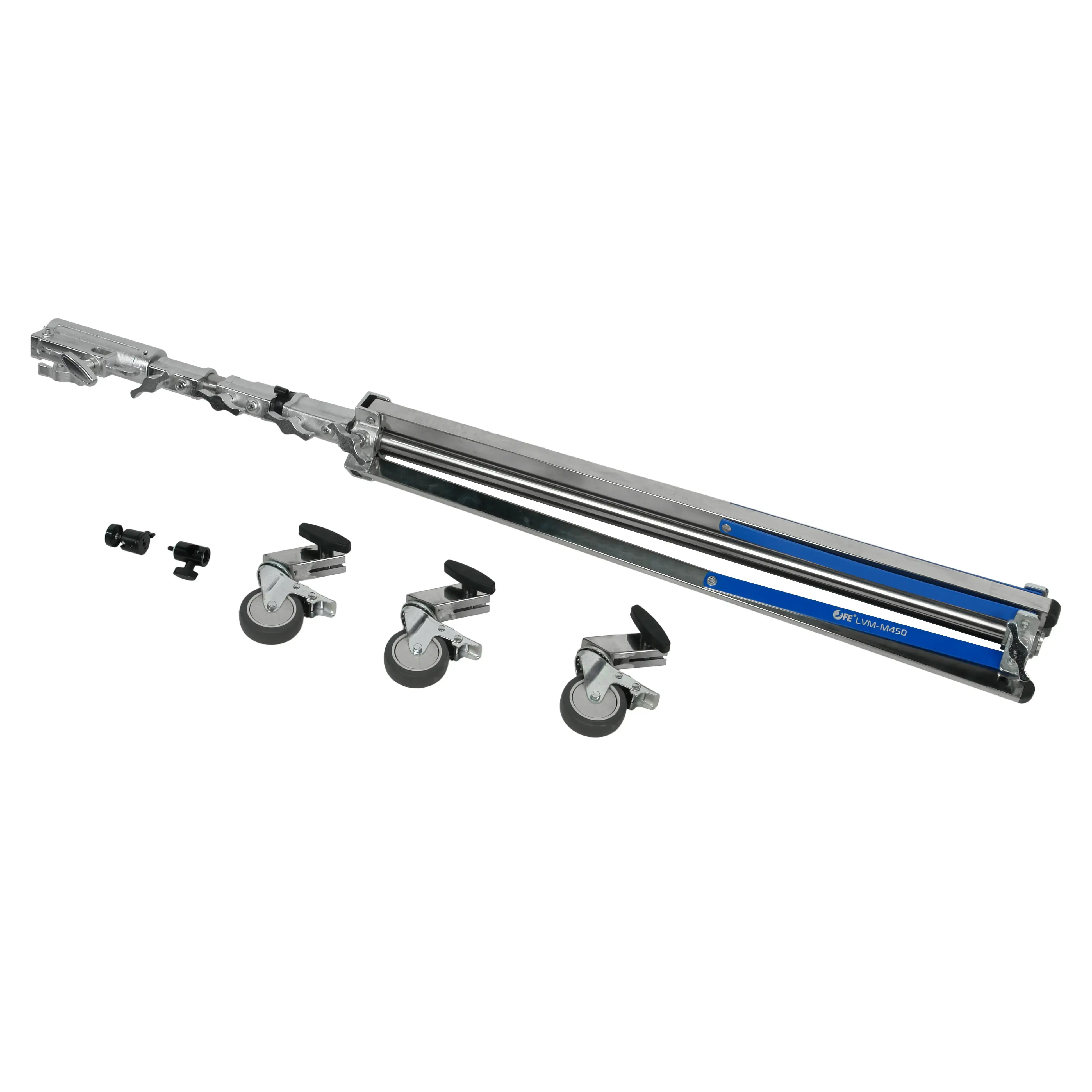 Falcon Eyes LVM-M450 – сверхпрочная стальная стойка-тренога на колесах для профессиональных цифровых камер с исключительной грузоподъемностью до 18 кг. Рабочая высота регулируется от 135 до 450 см за счет четырехсекционной центральной колонны с пружинной амортизацией. Комплектация включает интегрированную шаровую головку для камеры.