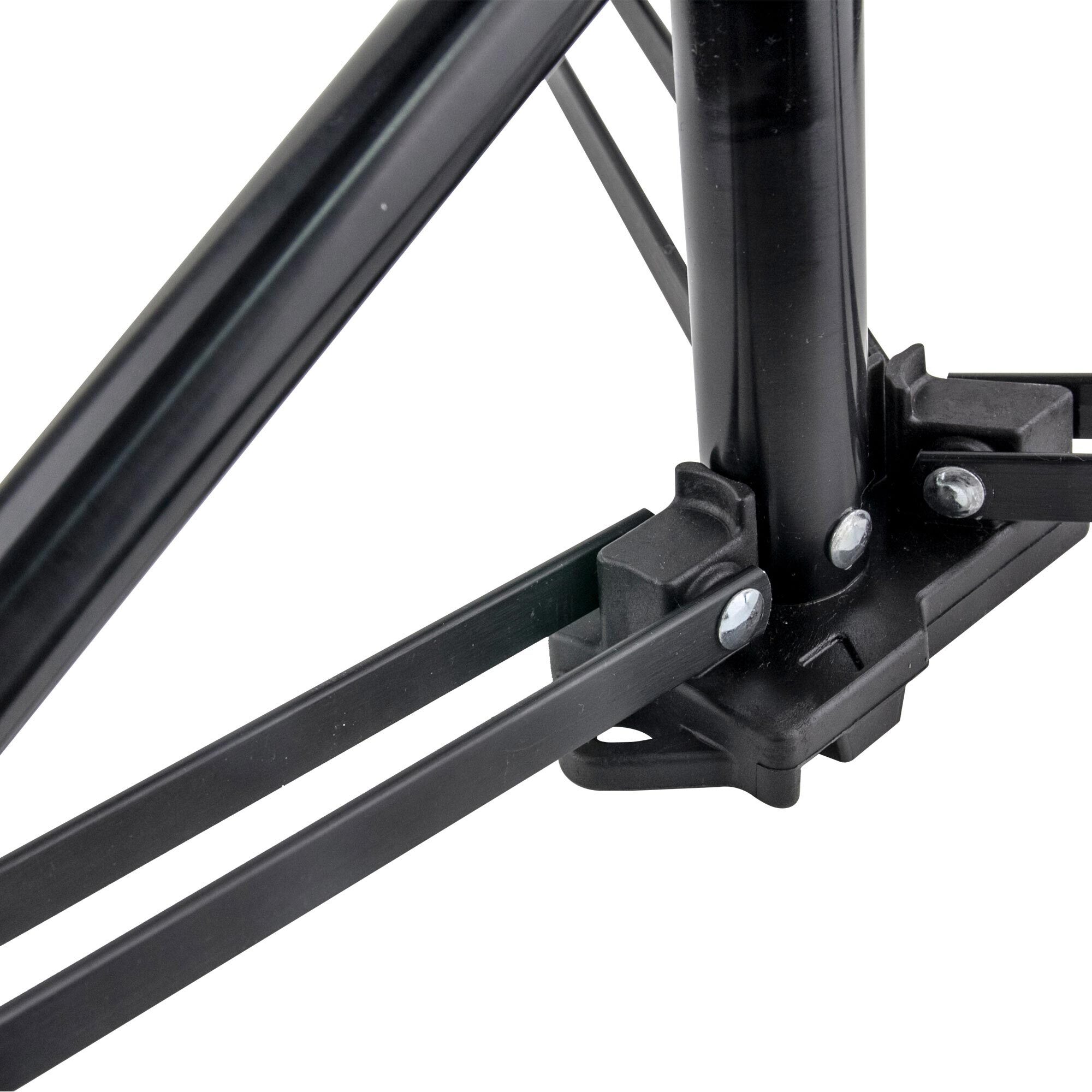 Запатентованный механизм взаимной фиксации позволяет присоединить стойку в сложенном виде к другой стойке всего одним движением. Стойки фиксируются между собой по 4-м сторонам.