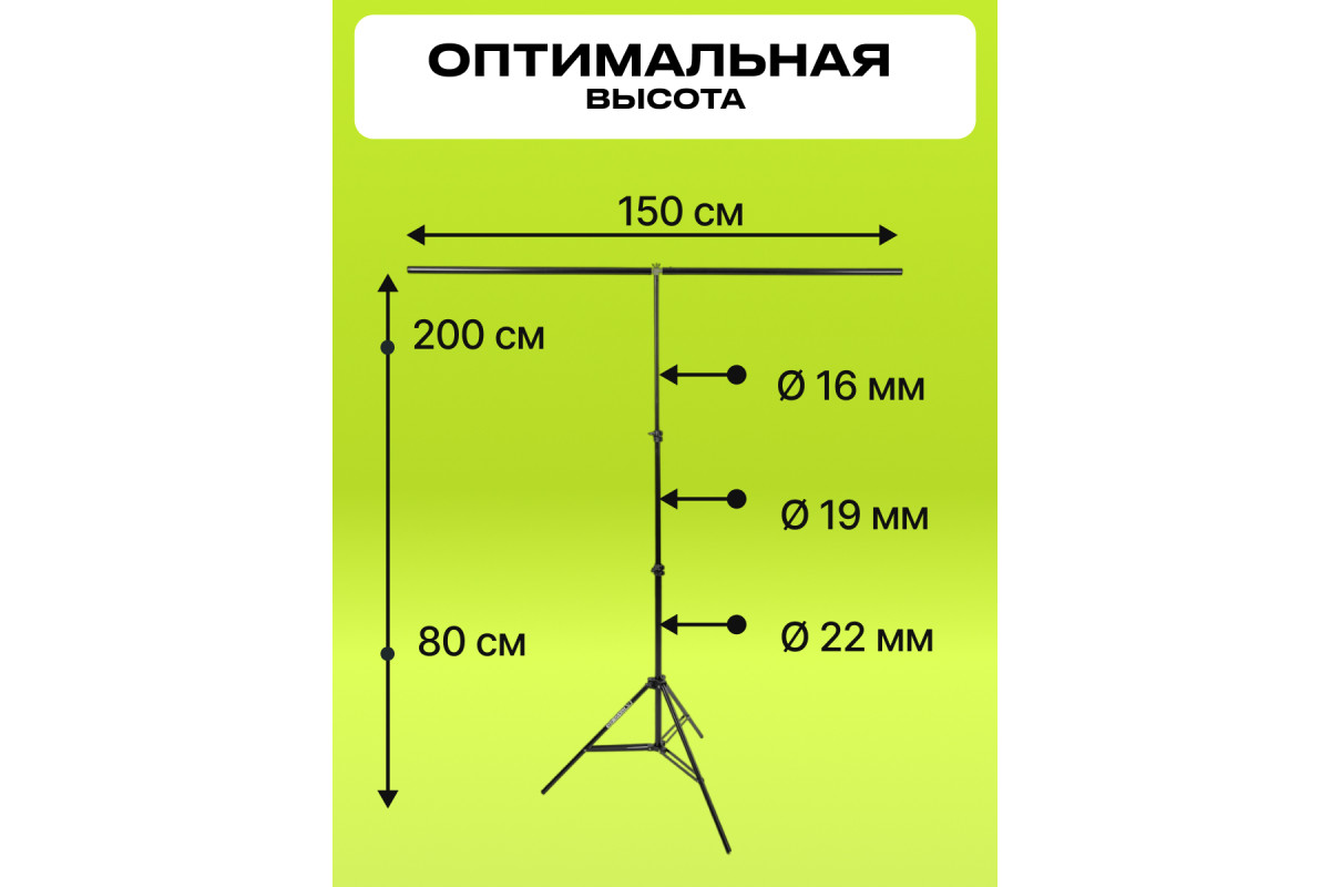 Диаметр колен стойки составляет 22 мм, 19 мм и 16 мм, а длина опор треноги - 50 см. Диаметр опоры - 16 мм. Стойка для фотозоны имеет длину 2*70 см и позволяет легко и удобно крепить пластиковый фон на стойке. Эта стойка для фотосессии является надежным и универсальным инструментом для фотографа. И может быть также использована для установки осветительных приборов, камер и другого студийного оборудования. Оборудование для фото Raylab BT2 с перекладиной - это отличный помощник для фотографа, который позволяет ему создавать профессиональный контент в любых условиях.