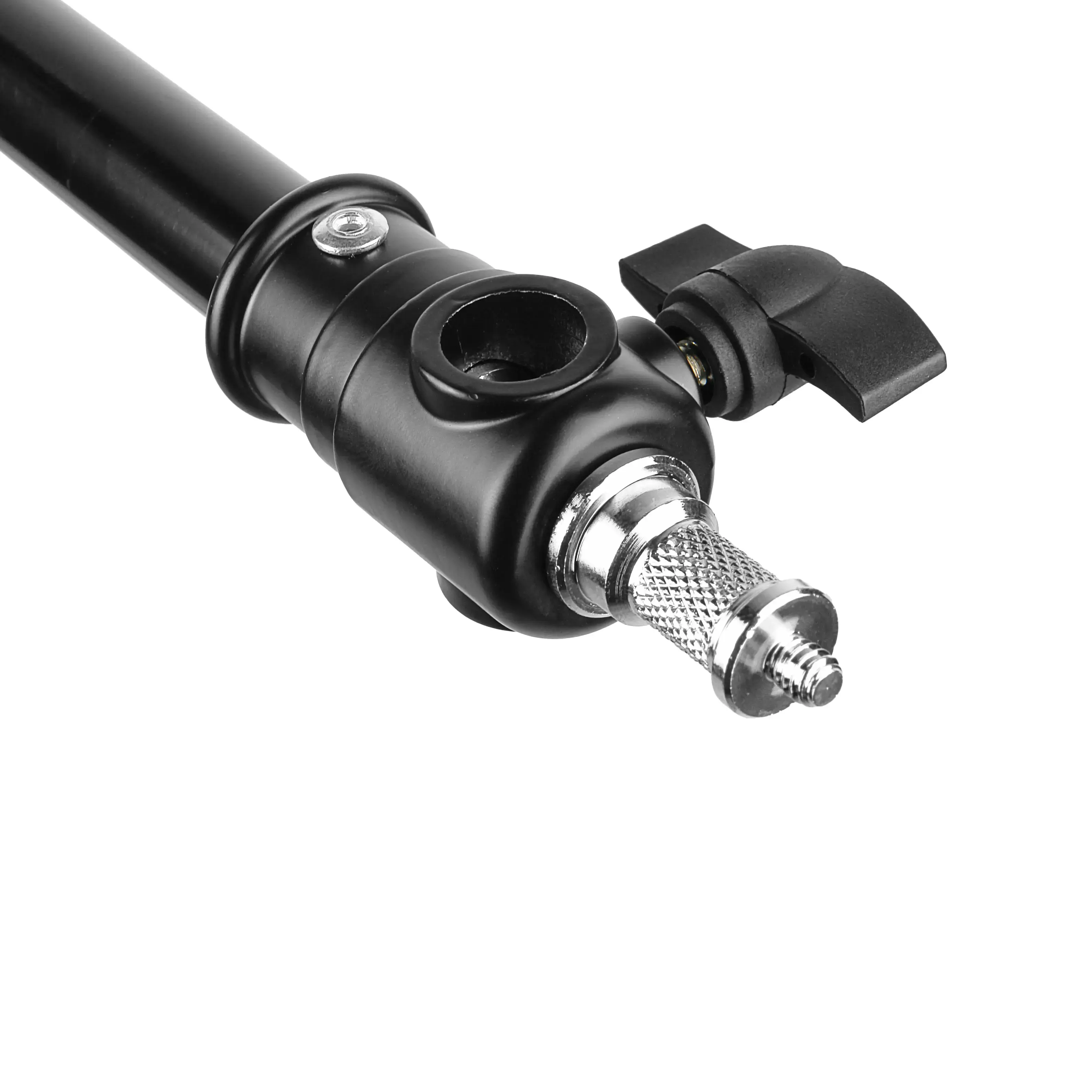 Стрела LSB-190H состоит из двух секций с пружинной амортизацией для плавного и точного позиционирования оборудования. Механизм наклона с фиксирующим рычагом позволяет устанавливать угол от -140° до 170°. Выдвижная конструкция длиной 120-214 см обеспечивает точное расположение камеры над объектом съемки без попадания стойки в кадр.