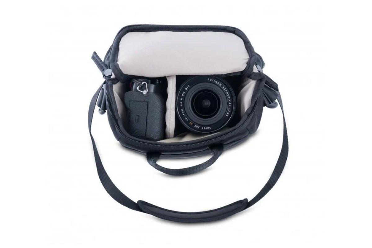 Компактная сумка для фотоаппарата с 1-2 небольшими объективами. Подходит для зеркальных камер начального уровня и беззеркальных фотоаппаратов. Плотные стенки защищают фототехнику от случайных ударов, для мелких аксессуаров (крышка объектива, карты памяти, салфетки) предусмотрено 2 внешних кармана на верхнем клапане. Плечевой ремень с широкой накладкой обеспечивает комфорт при длительном ношении. Сумка надежно закрывается на молнию + на 2 пряжки типа «фастекс». Для защиты от дождя имеется водонепроницаемый чехол. Стильный современный дизайн.