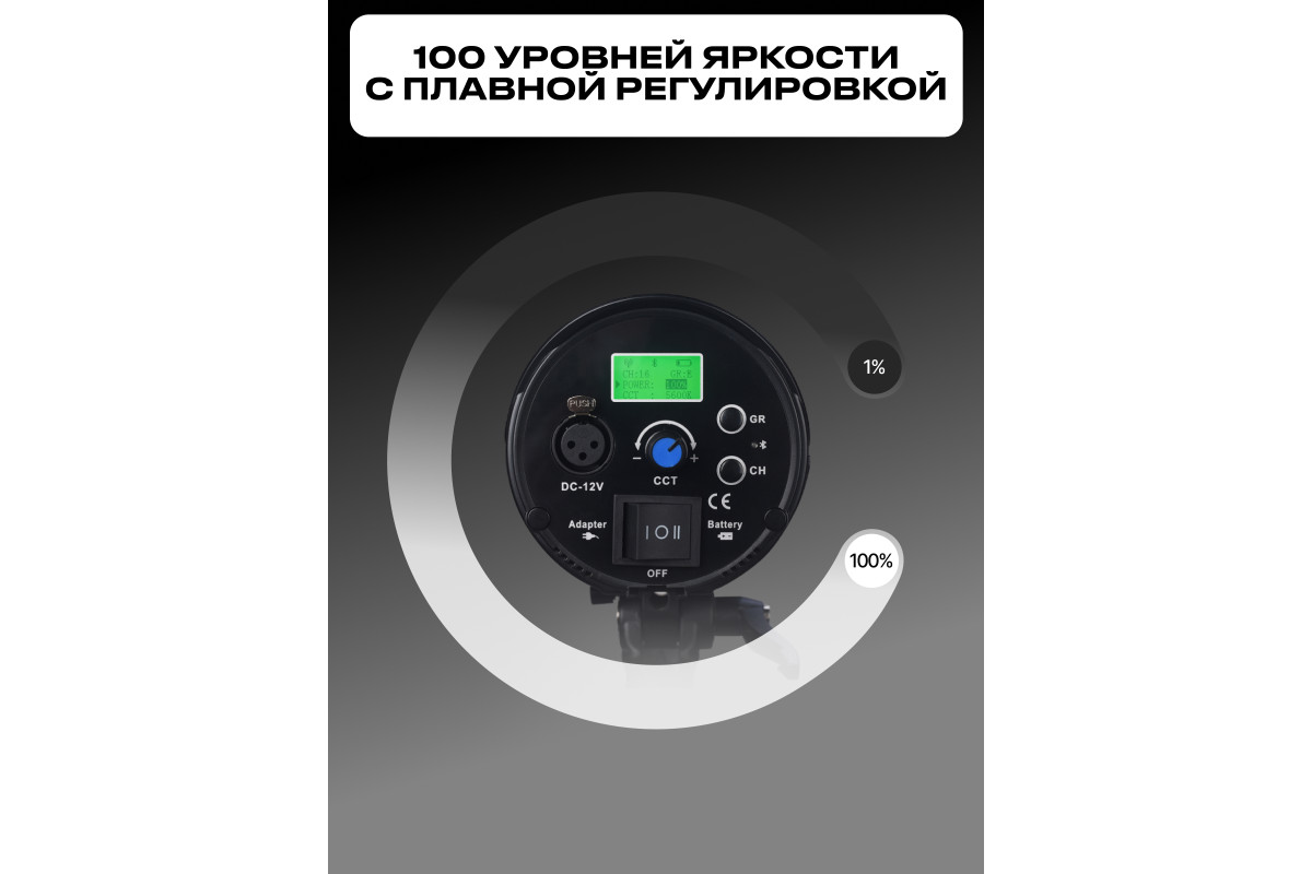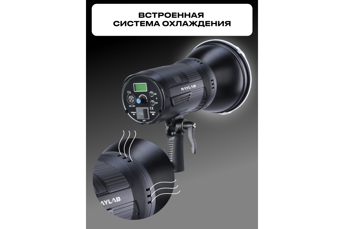 Raylab RL-100A – мощный и мобильный осветитель для студийной и выездной съемки. Источник света в форм-факторе моноблока оборудован высококачественным диодом, COB LED, обладающим высоким сроком службы (до 50 000 часов ) и цветопередачей (CRI: ≥96 , TLCI: ≥96), с возможность регулировать цветовую температуру от 3200 до 6500К. Моноблок может работать как от аккумулятора, так и от сети. Время работы от встроенного аккумулятора 6600 мАч составляет до 1.5 часов. Универсальный байонет Bowens обеспечиваем ему совместимость с большинством световых модификаторов. В комплекте включены рефлектор для создания более узкого пучка света, а также рассеиватель 5600К, помогающий сделать свет мягким.