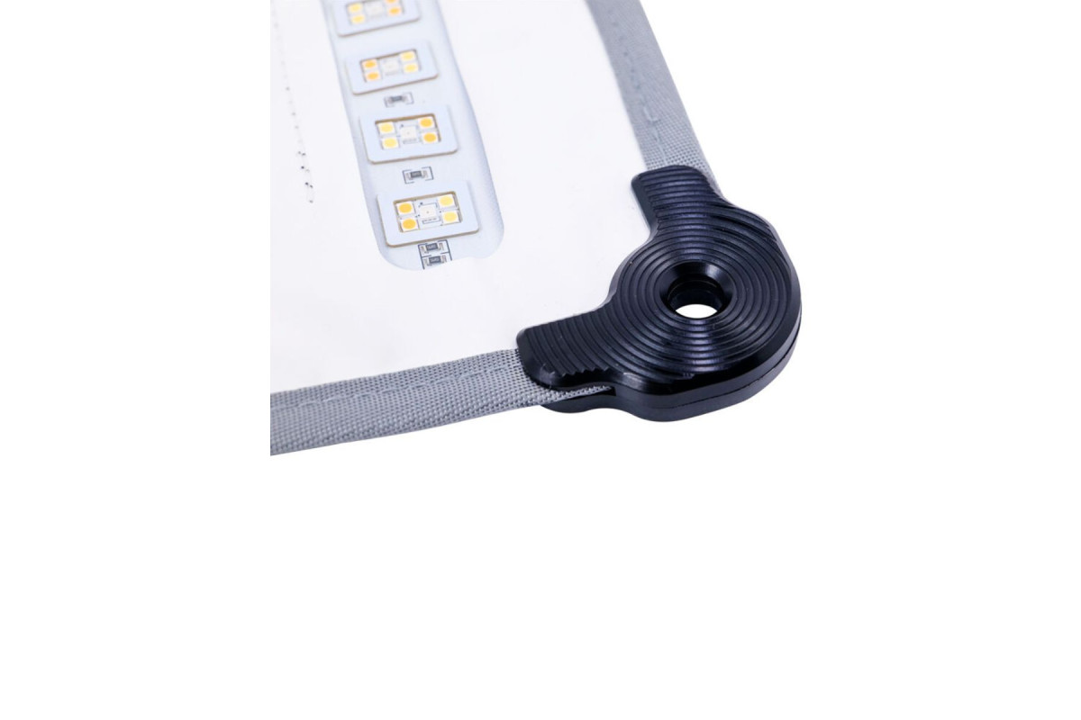 Входящий в комплект складной софтбокс имеет две степени рассеивания и тканевую сетку, в которой используется встроенная ткань с крючками и петлями, чтобы мгновенно превратить этот гибкий осветитель в ультратонкий мягкий свет, который добавит красиво контролируемый мягкий свет в сцену.