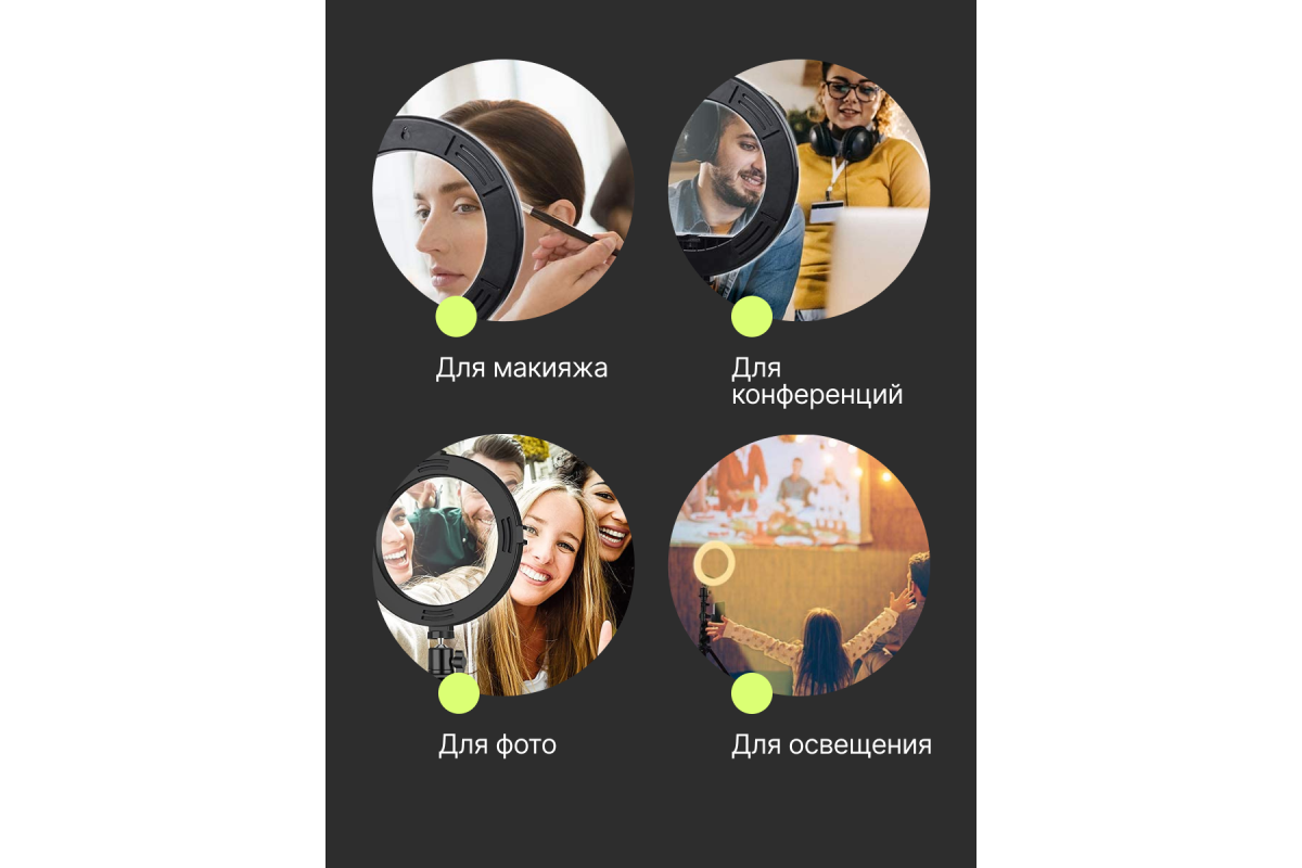 Комплект кольцевого света Raylab RL-0108 Kit— комплект света для начинающих блоггеров, визажистов и видеоконференций. Благодаря кольцевой конструкции, лампа создает ровный свет, обеспечивающий заполнение теней или световой рисунок. При этом не создает глубокие тени в районе носа и глаз, как это делают световые панели.