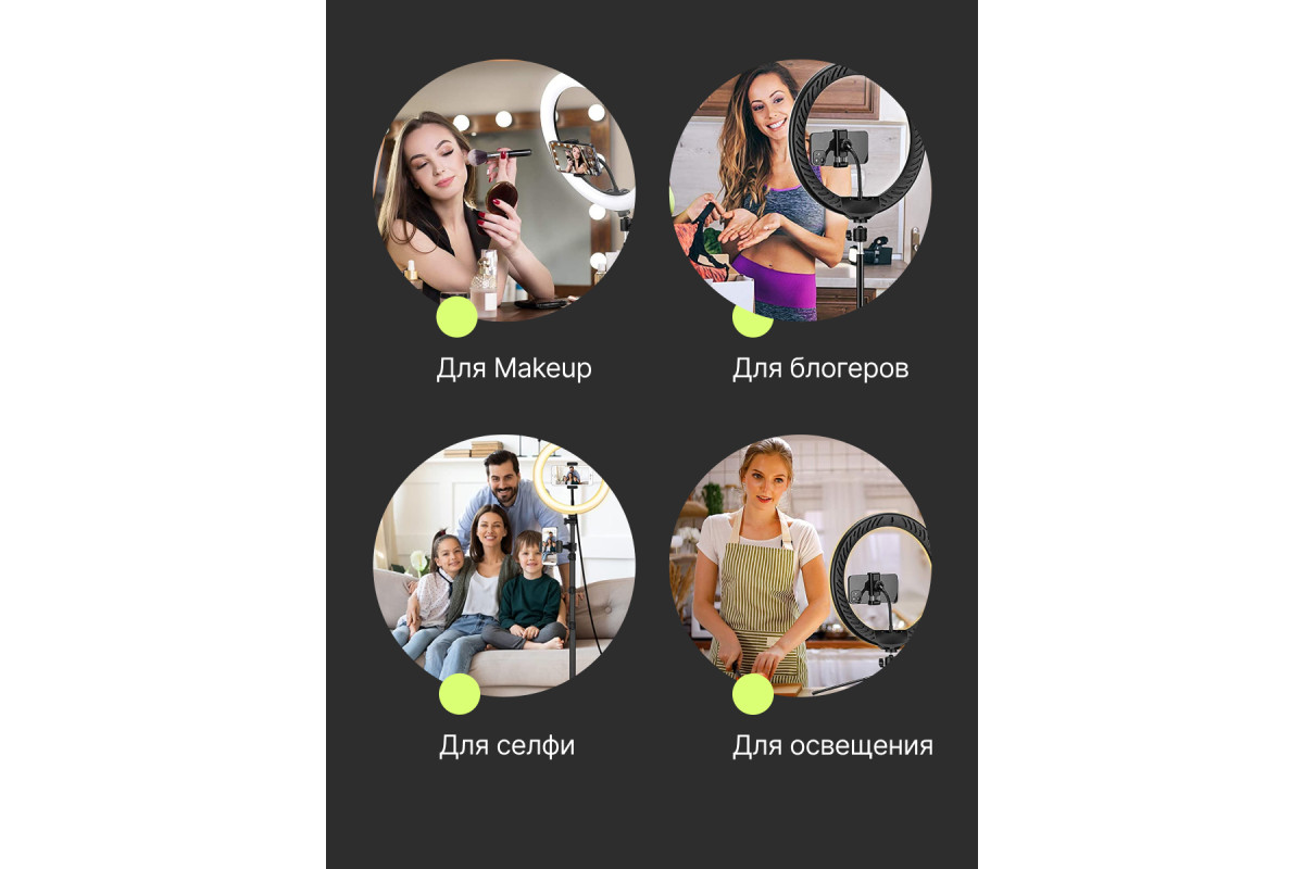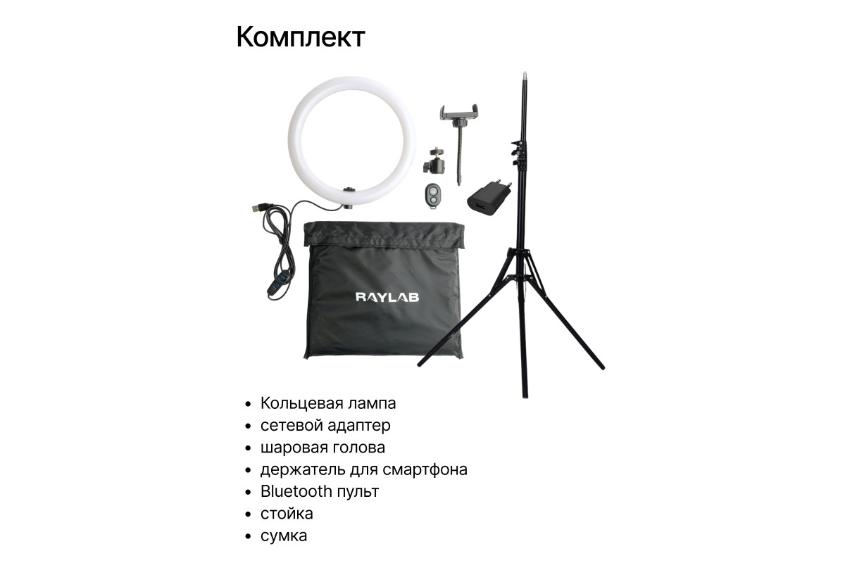 Комплект кольцевого света Raylab RL-0112 Kit — комплект света для блоггеров, визажистов и видеоконференций. Благодаря кольцевой конструкции, лампа создает ровный свет, обеспечивающий заполнение теней или световой рисунок. При этом не создает глубокие тени в районе носа и глаз, как это делают световые панели.