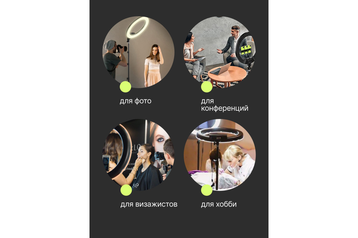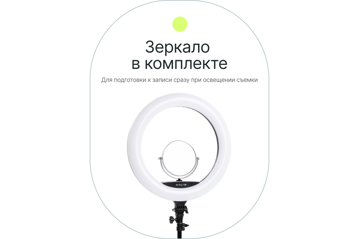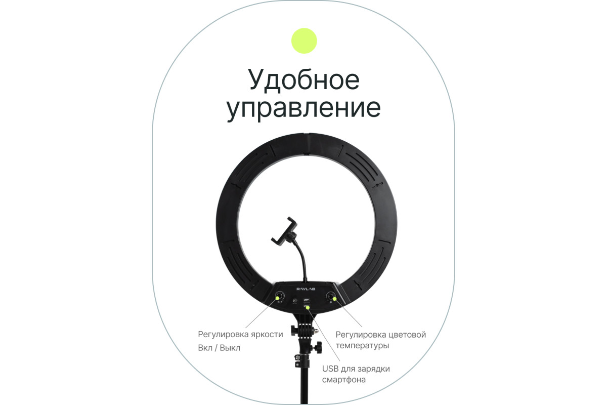 Комплект кольцевого света Raylab RL-0118 Kit — комплект света для блогеров, визажистов и видеоконференций. Благодаря кольцевой конструкции, лампа создает ровный свет, обеспечивающий заполнение теней или световой рисунок. При этом не создает глубокие тени в районе носа и глаз, как это делают световые панели. Универсальный держатель для смартфона в комплекте надежно удержит его в нужном положении на протяжении всей съемки. Стойка c широким диапазоном регулировок обеспечивает устойчивое положение комплекта. Удобное зеркало в комплекте поможет сделать и увидеть макияж уже при освещении съемки. А удобные пульты управления - изменить цветовую температуру и яркость или управлять записью через Bluetooth.