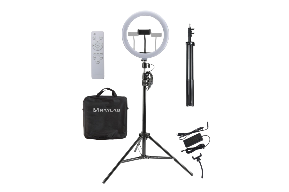 Кольцевые осветители позволяют получить прекрасное равномерное освещение, отсутствие лишних теней, ровный цвет кожи и необычный эффект ореола в глазах модели. Также, данный вид ламп незаменим при предметной съемке, так как заменяет несколько видов оборудования и имитирует естественное освещение. 418 SMD светодиодов обеспечивают мощность 50 Вт. Лампы изготовлены по современным стандартам качества и крайне долговечны, срок жизни диода составляет до 50000 часов работы. Корпус выполнен из матового материала, исключающего лишние блики и отражения, к тому же обладающего хорошей теплоотдачей. Лампа закреплена на подвижную голову, она свободно наклоняется под любым углом. Комплект RL-0518 включает в себя не только кольцевую лампу, но и все необходимое для бьюти-блога или профессионального макияжа. Помимо стойки для студийной съёмки, вы найдете в комплекте пульт дистанционного управления, зеркало, держатель для смартфона и гибкое крепление, благодаря чему вы сможете создать свою домашнюю видео студию. Переносить лампу будет удобно в надежном транспортировочном чехле.