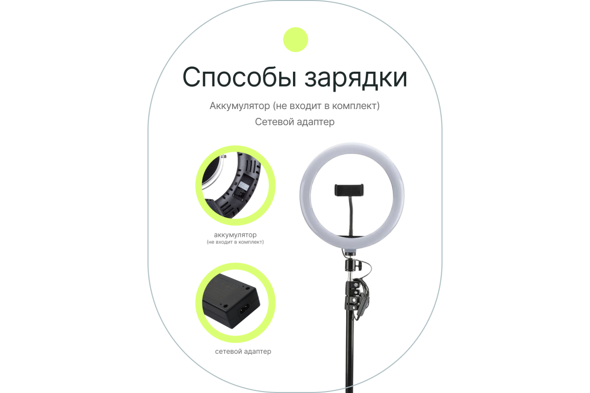 осветитель, пульт ДУ, держатель для смартфона, зеркало, гибкое крепление