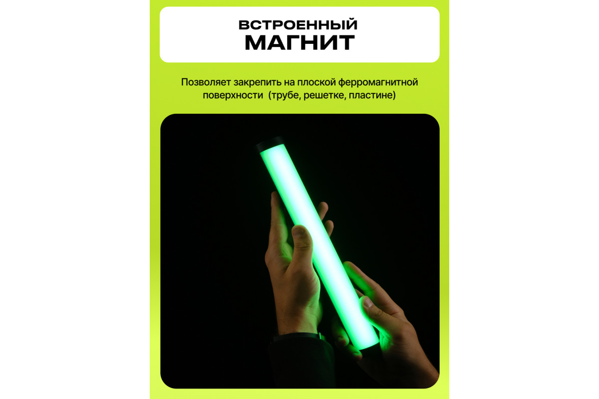 Светодиодный осветитель Raylab 5200mAh магнитный представляет собой компактное и многофункциональное осветительное устройство, разработанное для фотографии и видеосъемки в различных локациях. Он обеспечивает яркое и качественное освещение, которое позволяет создавать профессиональные и креативные селфи снимки или создать удивительную атмосферу в кадре во время предметной, портретной или фуд сьемки. Неоновый осветитель имеет форму трубки или светового жезла с компактным корпусом и весом всего 310 грамм, что делает его легким и удобным в использовании. при этом корпус модели изготовлен из метала. Благодаря своей вытянутой форме, он может быть размещен в любом месте, будь то автомобиль, аквариум, бытовая техника или даже под одеждой, сохраняя при этом широкий и яркий световой поток. Осветитель оснащен встроенным аккумулятором емкостью 5200 мАч, который обеспечивает от 3 до 15 часов непрерывной работы. Его можно легко подзаряжать во время съемки на локации от пауэрбанка, ноутбука или от сети через USB-C. Полный заряд батареи достигается всего за 2 часа, что позволяет быстро возобновить работу. Led свет для фото имеет удобное крепление, включая стандартное резьбовое крепление для штативов и стоек, а также магниты на алюминиевом корпусе, позволяющие закрепить его на любой металлической поверхности или конструкции, такой как мост, ограда или перекладина. Это дает возможность зонировать освещение, обеспечивая выбор того, что освещать в кадре, а что оставить в тени. RGB лампа Raylab RL-LED10RGB также идеально подходит для оригинальной портретной съемки, создавая красивые продолговатые блики в глазах модели и красочные цветовые акценты на заднем фоне. С его высоким индексом цветопередачи CRI>95 вы можете быть уверены в натуральной передаче тона кожи.