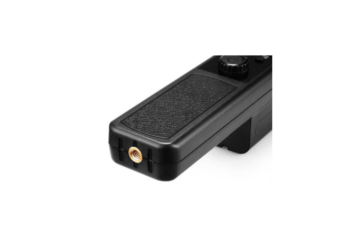 Вытянутый осветитель Yongnuo YN360 с большим количеством светодиодов и разной цветовой температурой. Яркость диодов плавно регулируется при помощи диммера на ручке устройства. Также снизу ручки имеется стандартное резьбовое отверстие 1/4″. Помимо прочего настройками осветителя можно управлять дистанционно через приложение на смартфоне.